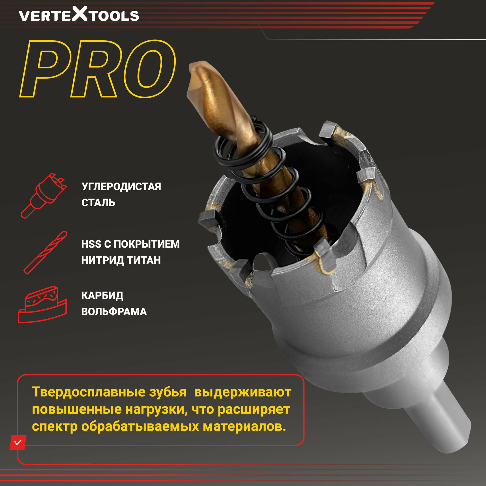 Коронка по металлу твердосплавная с центрирующим сверлом vertextools 35мм 567 ₽