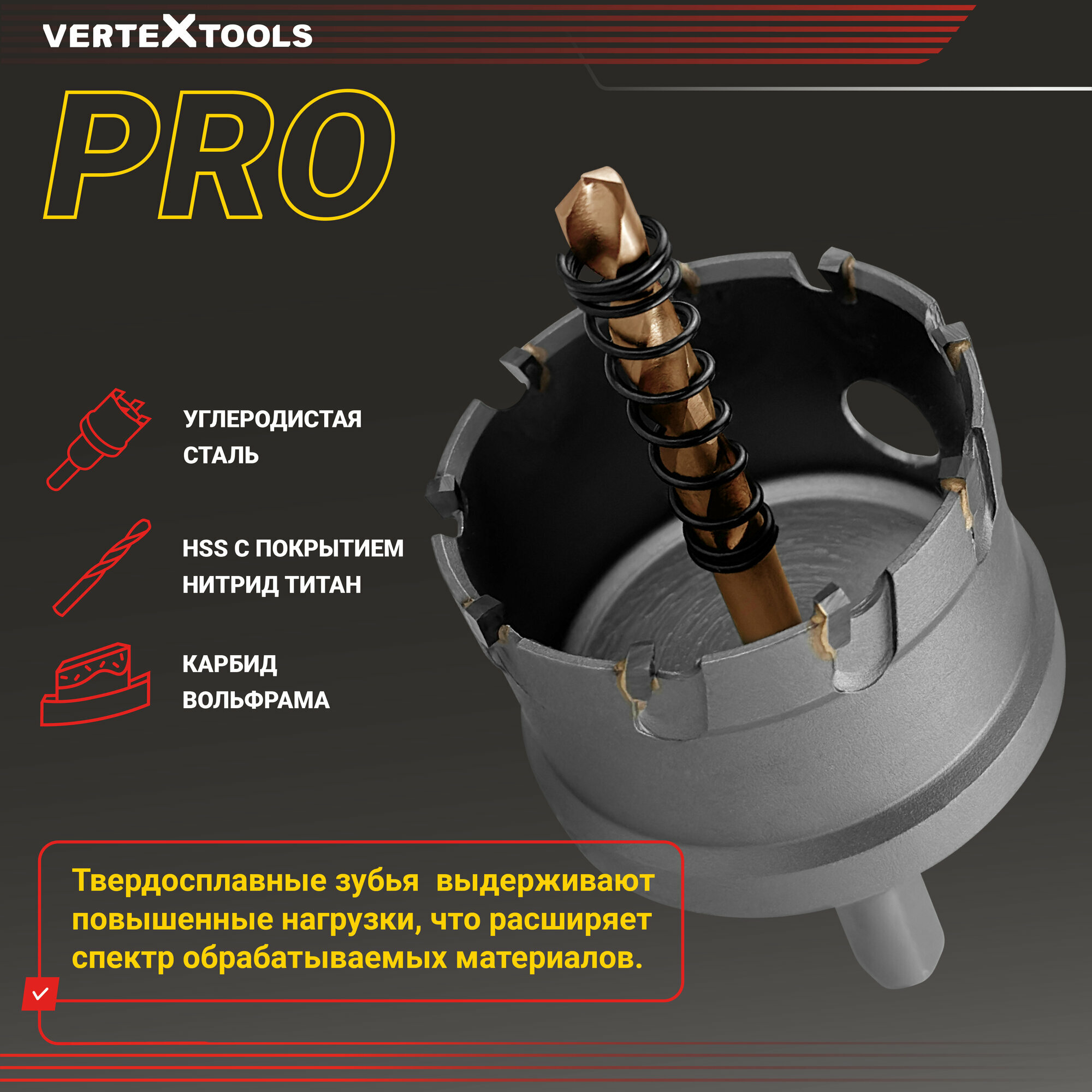 Коронка по металлу твердосплавная с центрирующим сверлом vertextools 35мм 567 ₽