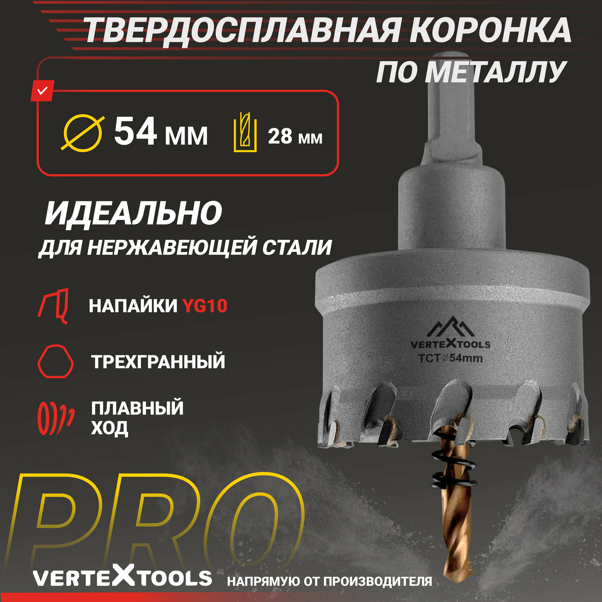 Коронка по металлу 54 мм. с центрирующим сверлом VertexTools информация: