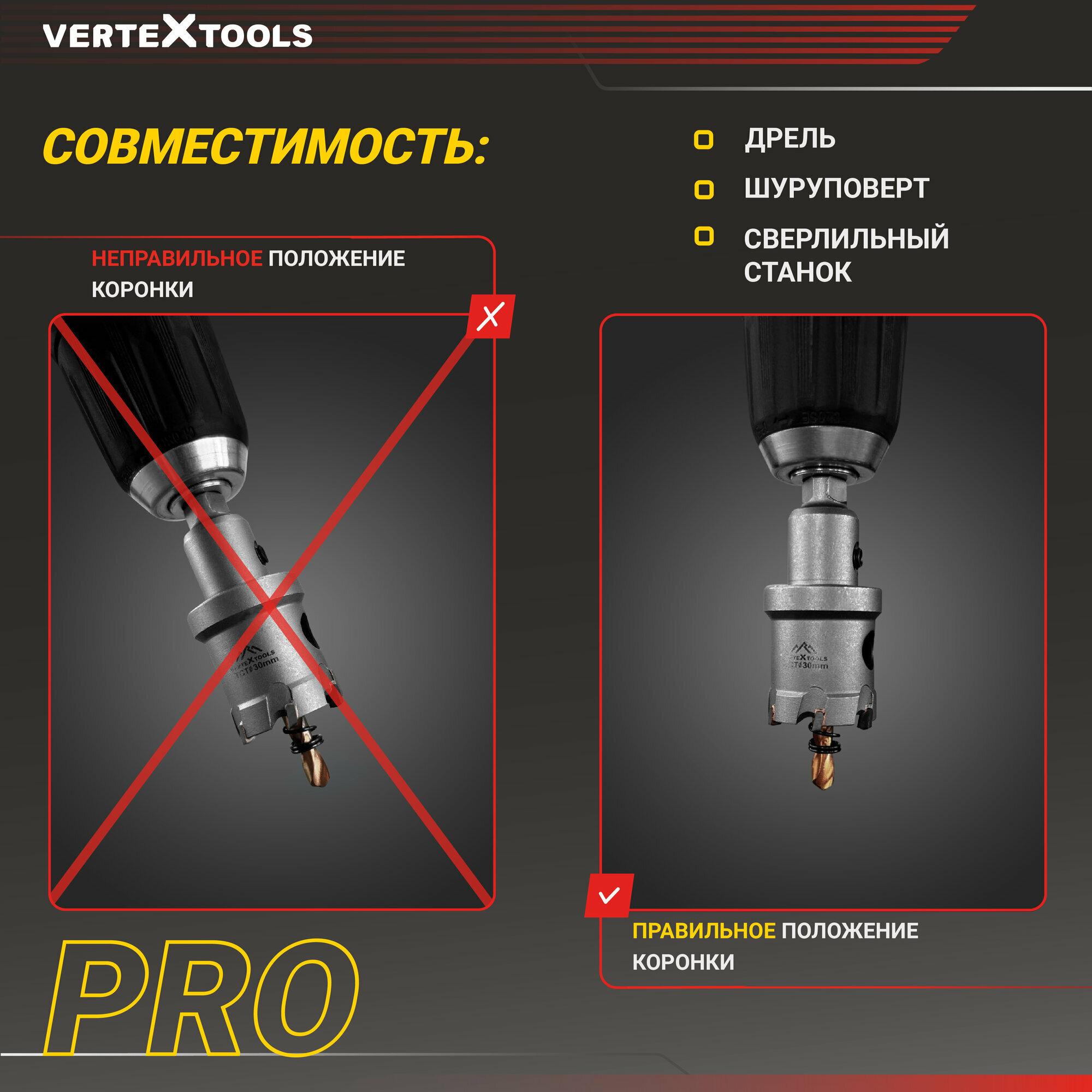 Коронка по металлу твердосплавная с центрирующим сверлом vertextools 25мм 560 ₽