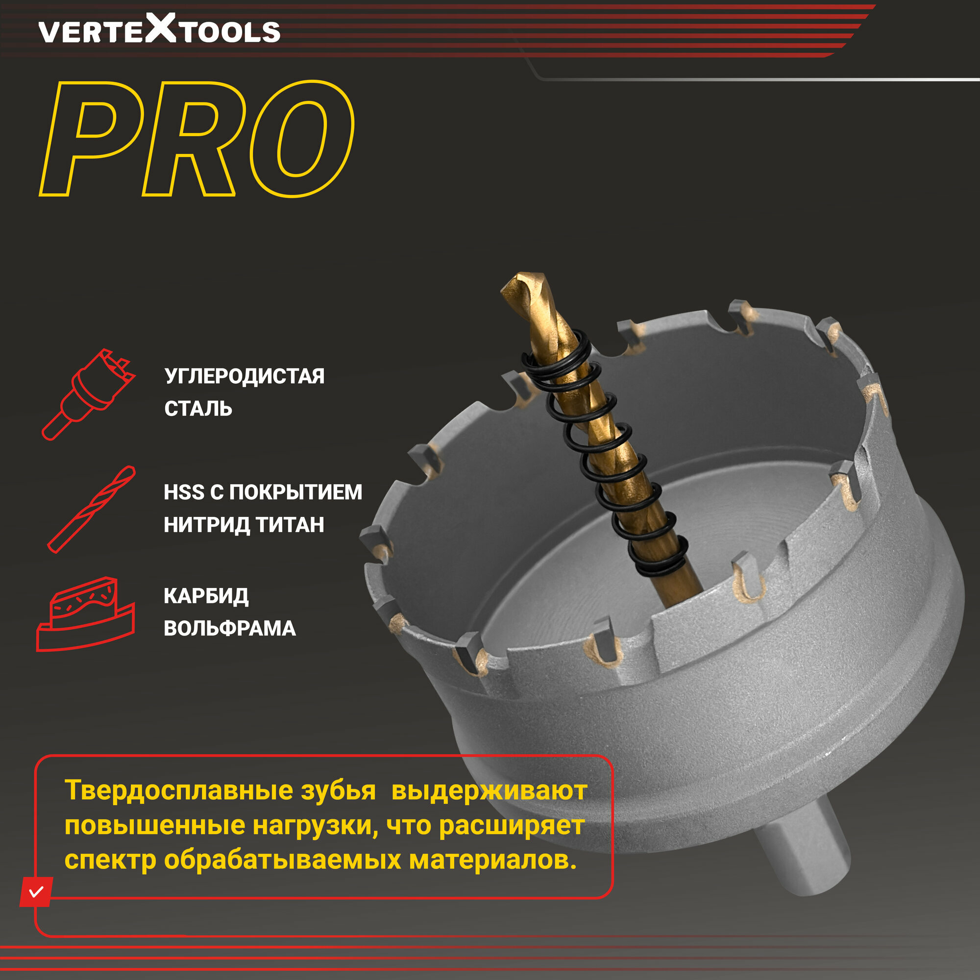 Коронка по металлу твердосплавная с центрирующим сверлом vertextools 35мм 567 ₽