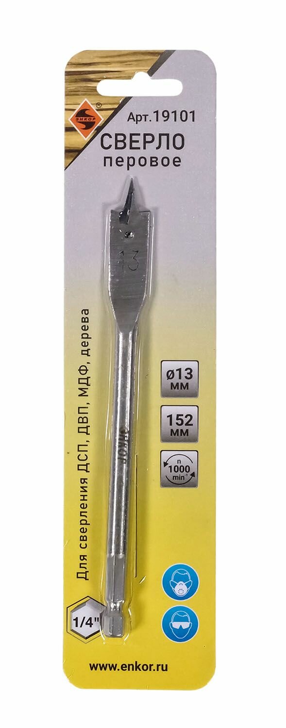 Сверло перовое, по дереву, по бетону, центровочное Энкор 19101