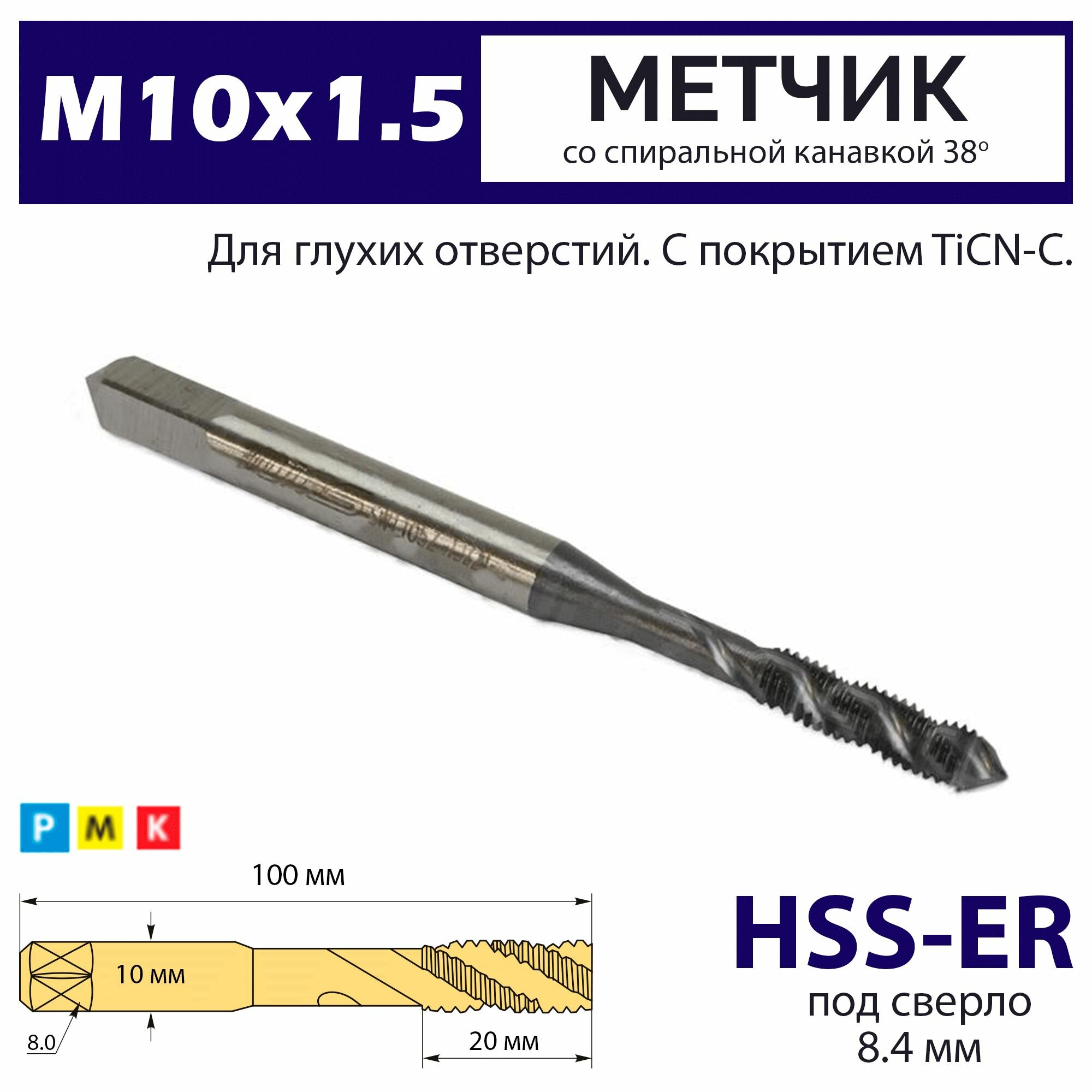 Метчик винтовой М 10х1.5 HSS-E 6H со спиральной стружечной канавкой 38 градусов TiCN-C информация: