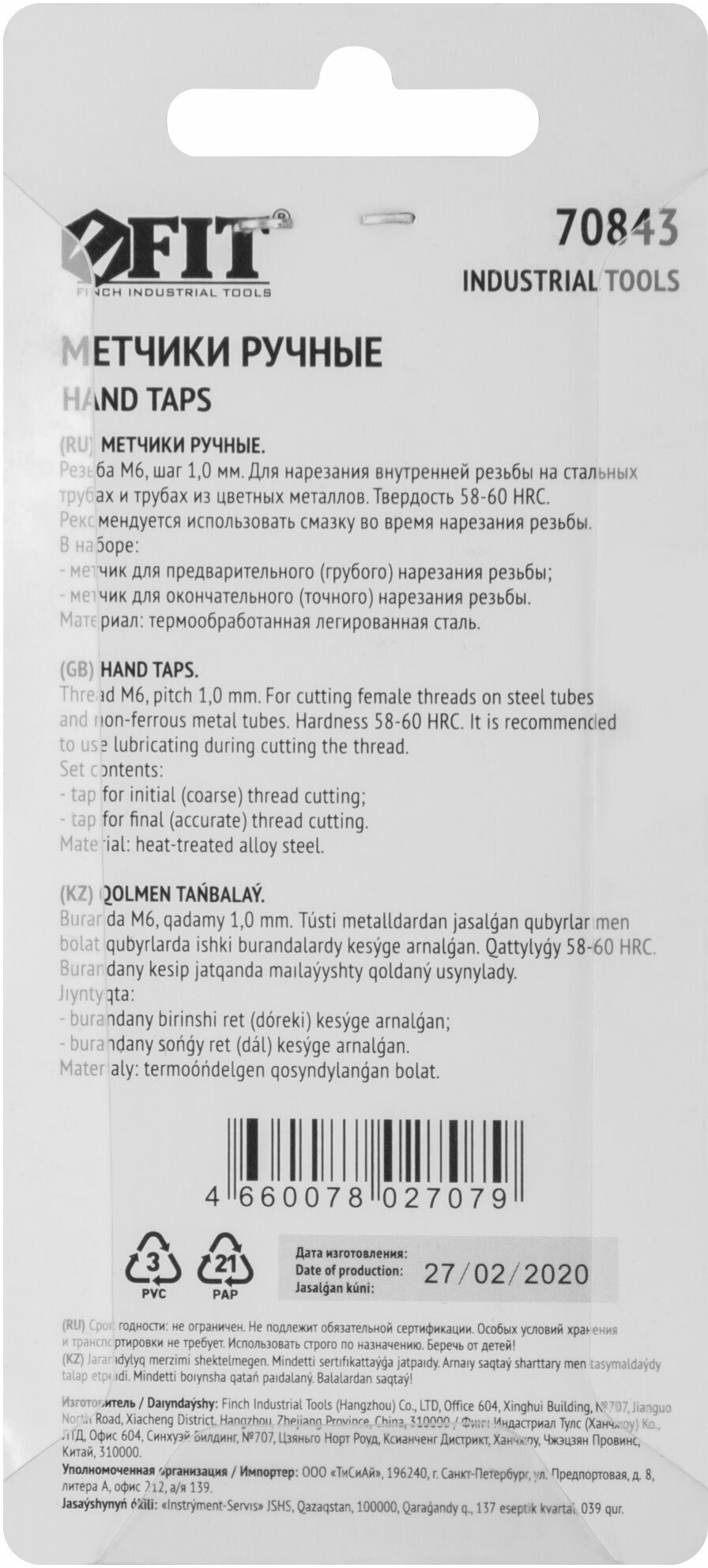 10 цен на Метчики метрические FIT 70843 легированная сталь, набор 2 шт. М6х1,0 мм
