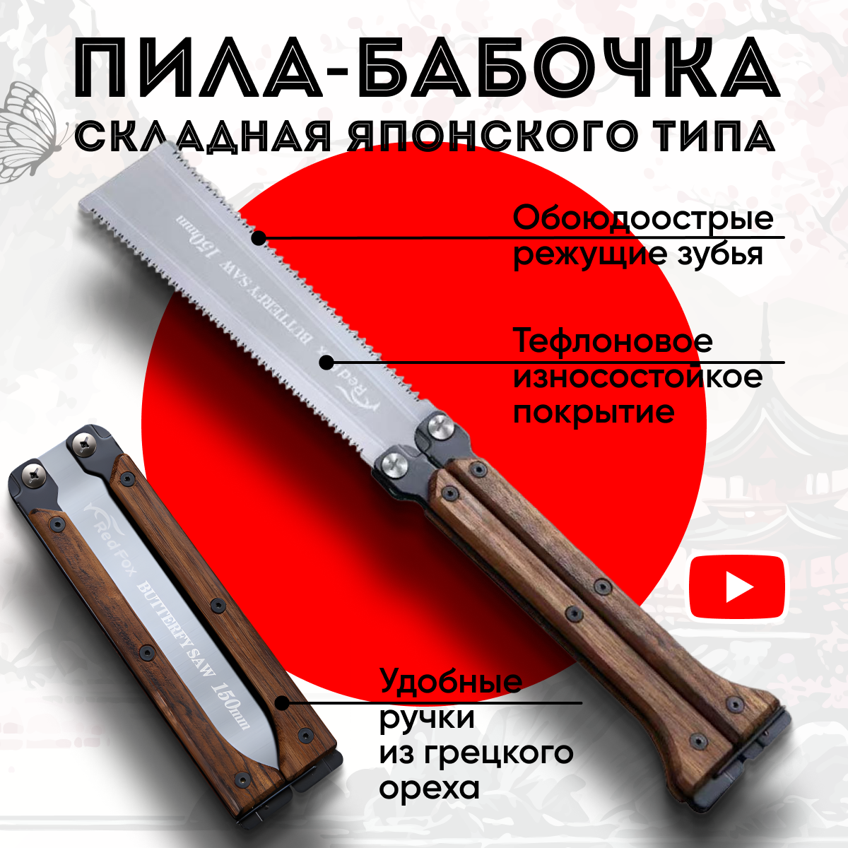 Ручная пила-бабочка японского типа, ножовка универсальная, складная информация: