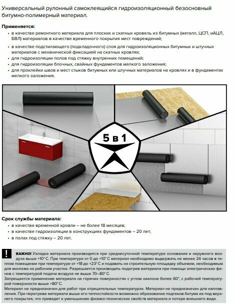 Ремонтная гидроизоляция технониколь 5в1 самоклеющаяся, 0,8м х15 м информация: