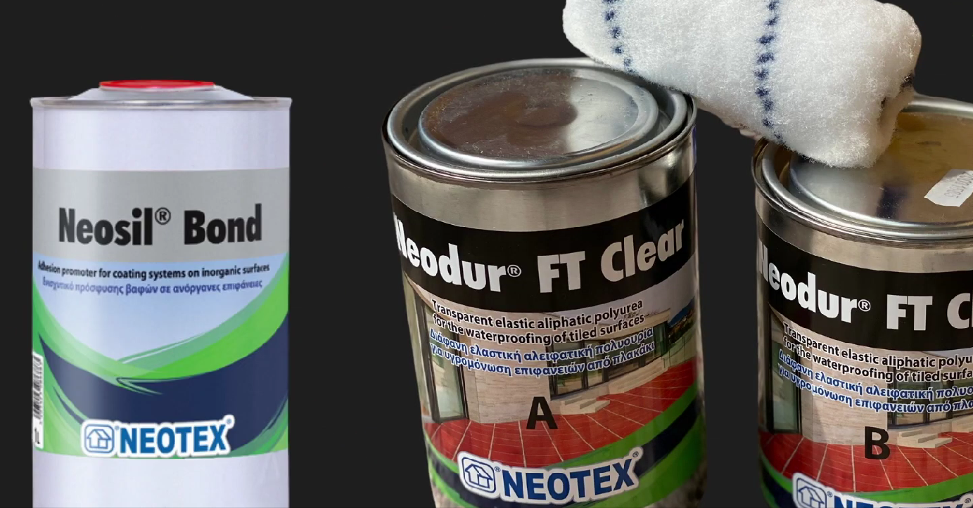 Двухкомпонентная Прозрачная УФ стойкая гидроизоляция-лак из полимочевины ручного нанесения Neodur FT Clear(A+B) 2кг для плитки и камня информация: