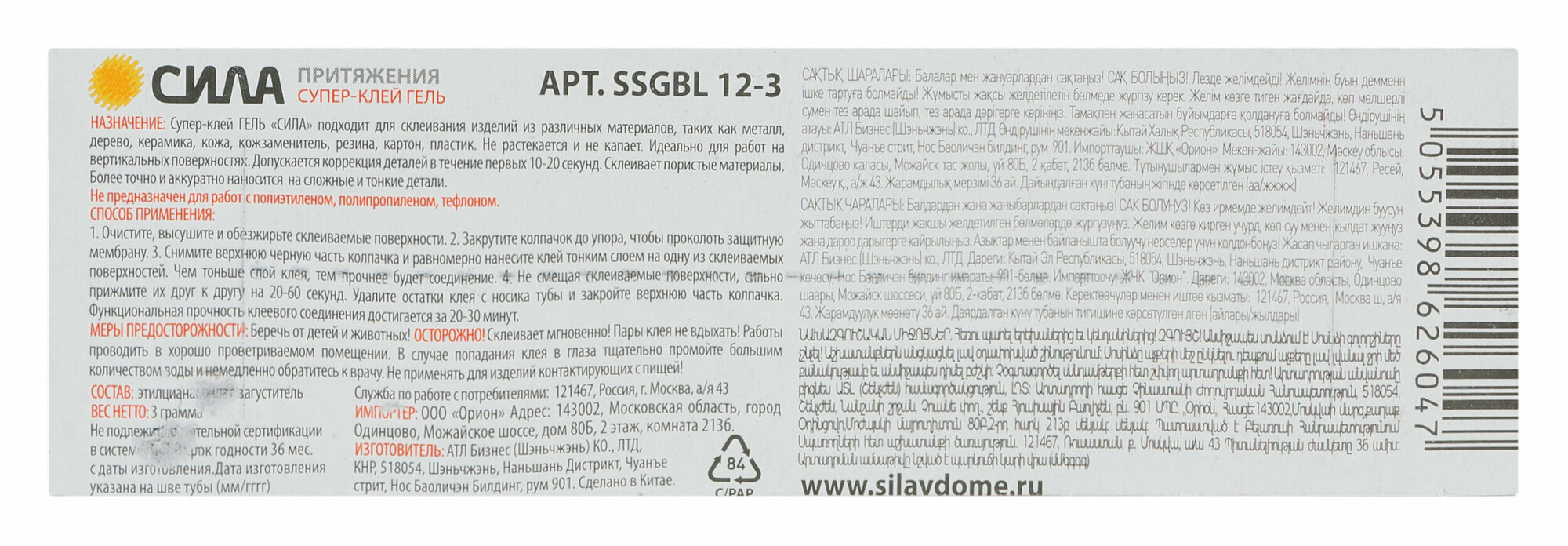 10 цен на Клей супер сила SSGBL12-3 гель 3 гр. BL-12 (288/576/23040) C0042300