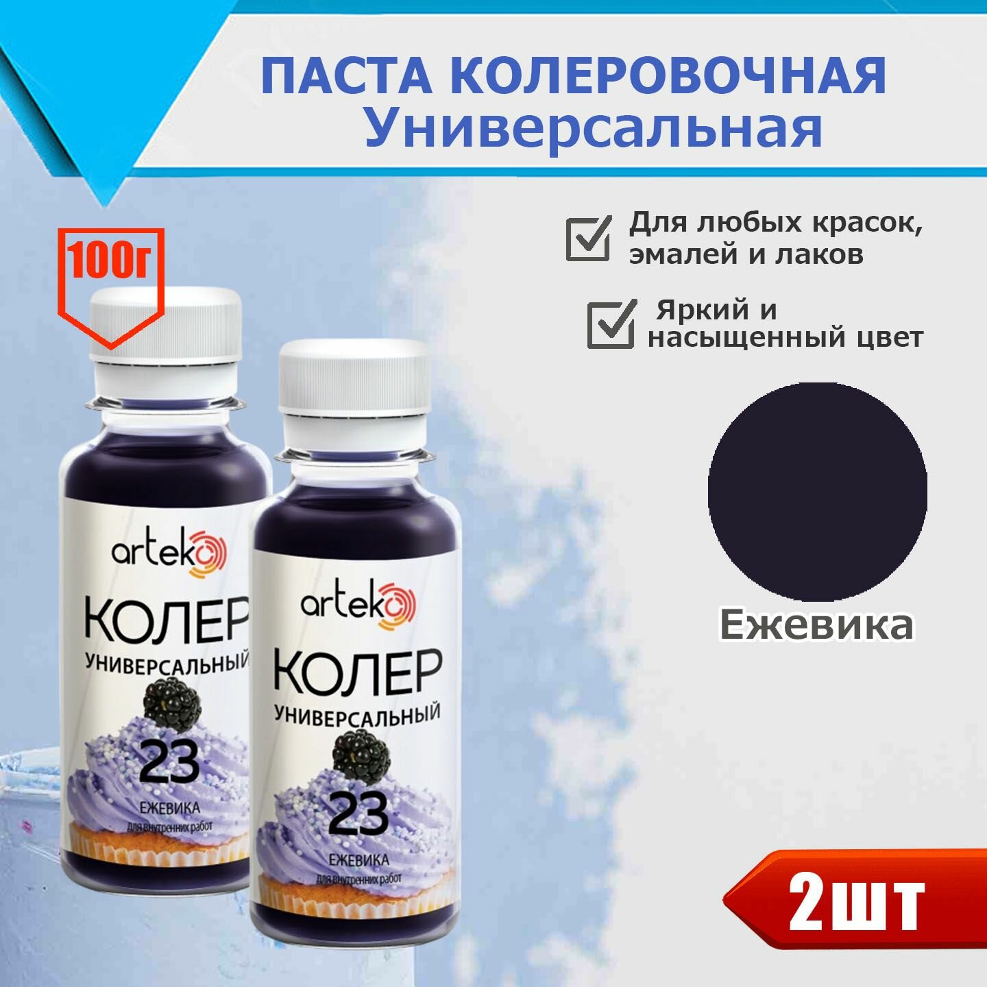 10 цен на Универсальный колер- паста. "Ежевика" №23 для внутренних и наружных работ, для любых красок и эмалей. Цена за 2 баночки по 100 г