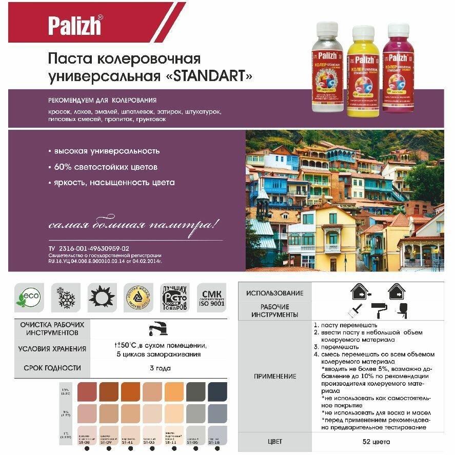 Паста колеровочная универсальная STANDART PALIZH, колер для краски, эмали, лака (150 г), чёрный №18 информация: