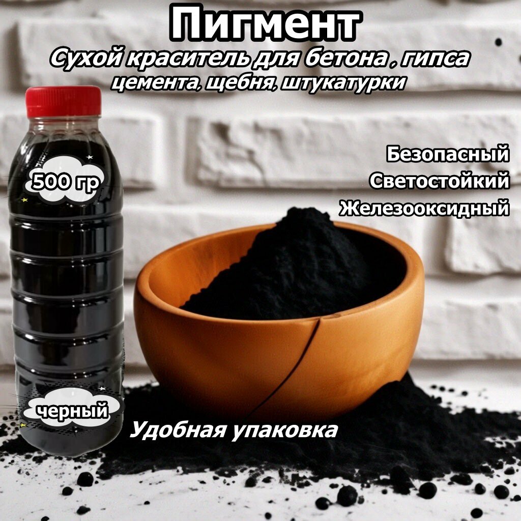 Пигмент черный для бетона, гипса, краски и кирпича 500 гр универсальный сухой краситель информация: