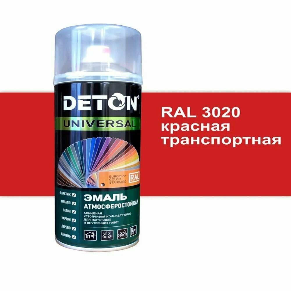 Краска аэрозольная, DETON, универсальная, транспортный красный, RAL 3020 информация: