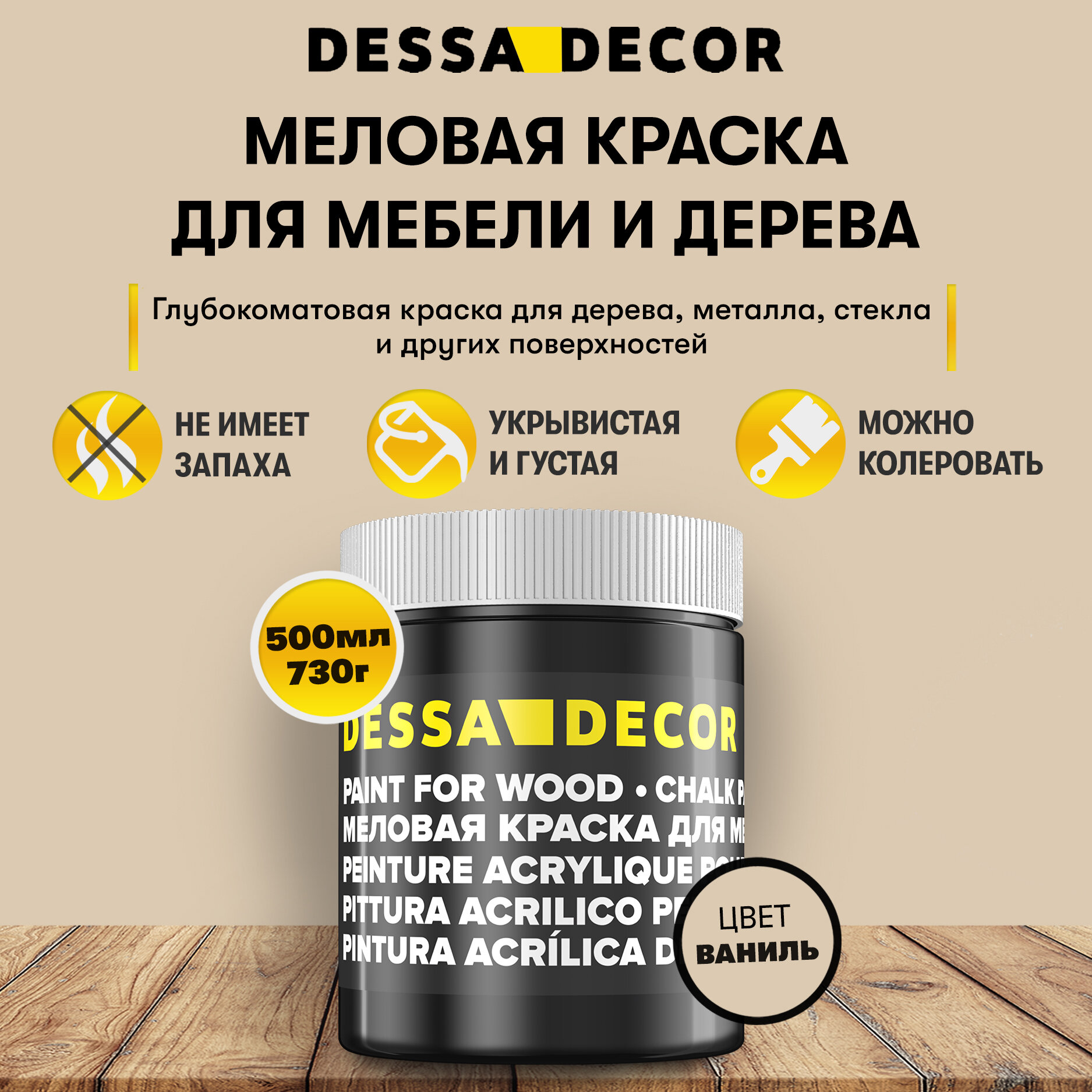 10 цен на Меловая акриловая краска для мебели DESSA DECOR 730 г, для дерева, кухни, декора, пластика, стекла, цвет ваниль / ванильный