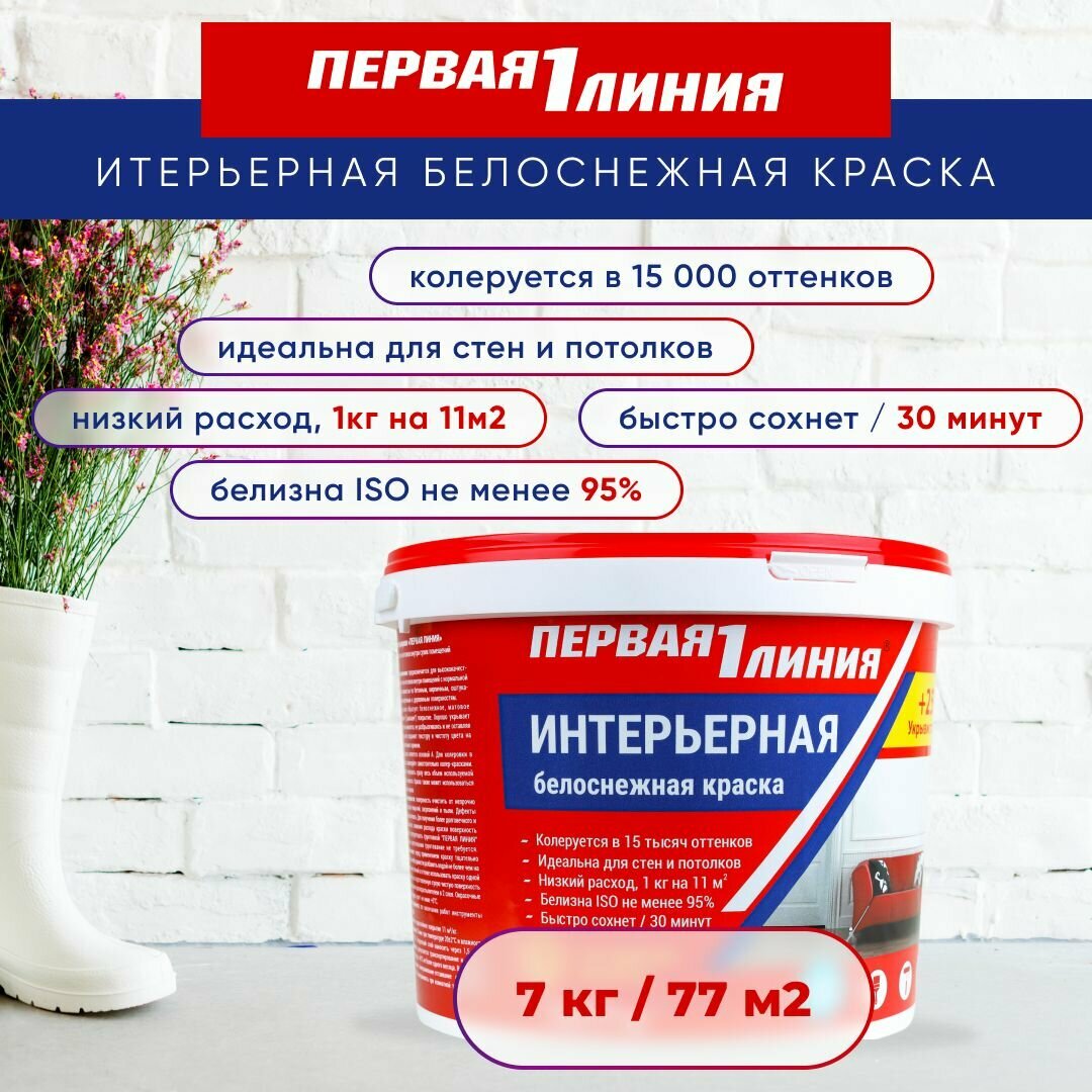Краска для стен и потолков Первая линия интерьерная, быстросохнущая, акриловая, белоснежная 7 кг информация: