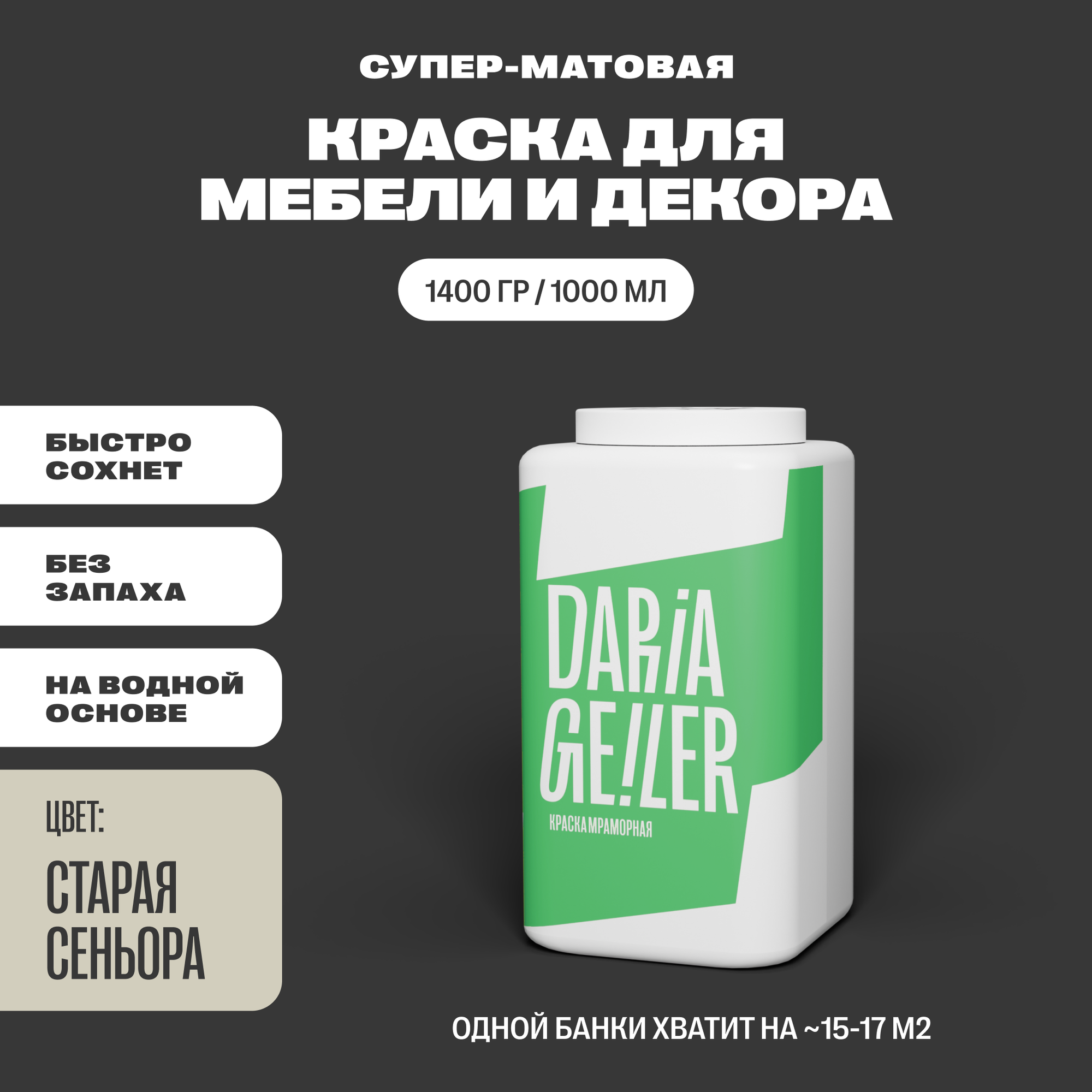 Отзывы на Мраморная краска для мебели Дарья Гейлер "Старая Сеньора" 1000 мл, мебельная краска по дереву для стен Daria Geiler