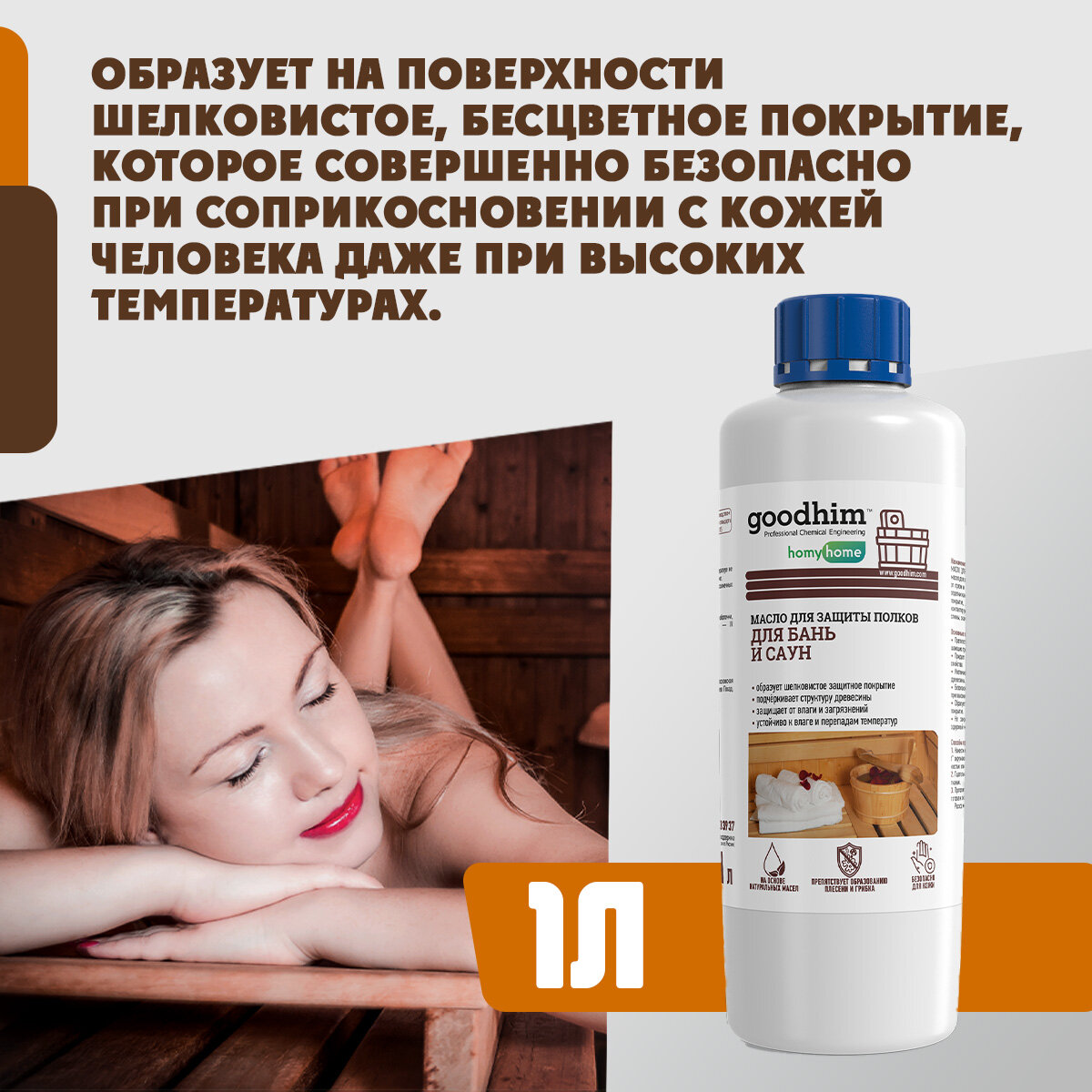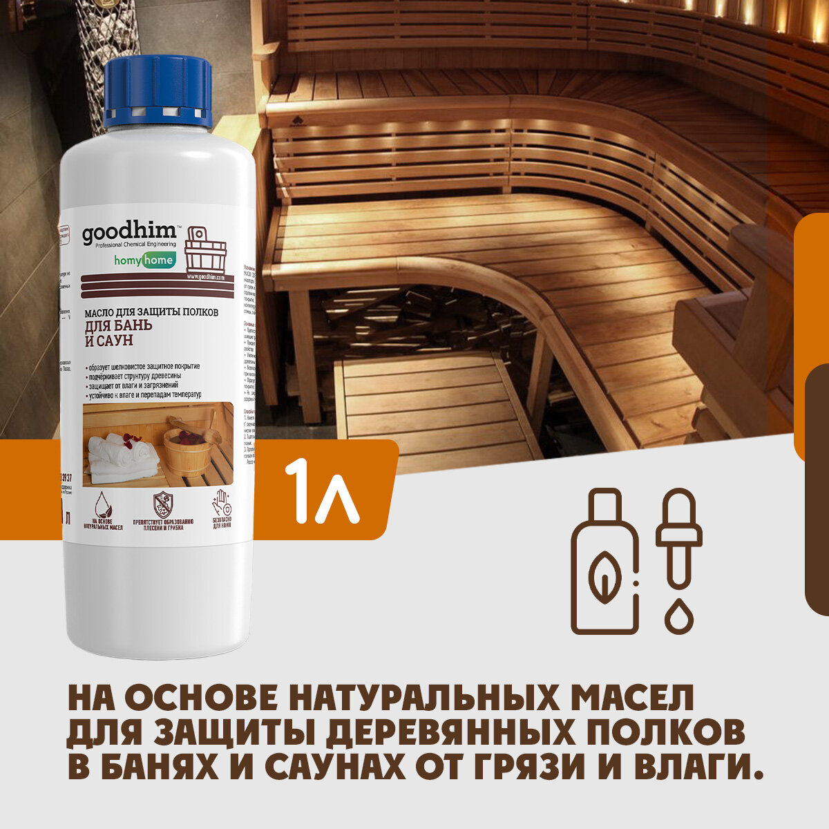Масло натуральное для защиты полков в бане и сауне GOODHIM 210, 1 л 94279 информация: