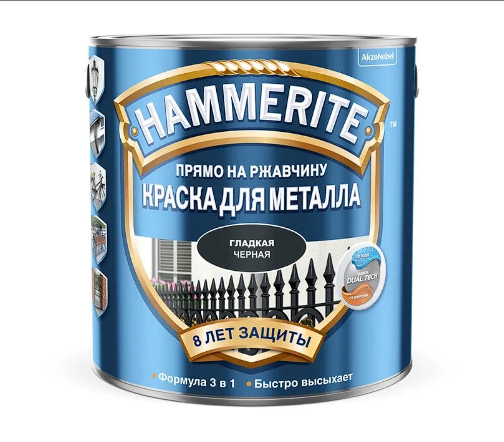 Отзывы на Hammerite Smooth эмаль гладкая по ржавчине 3в1 (черный, RAL 9005, 0,5 л)