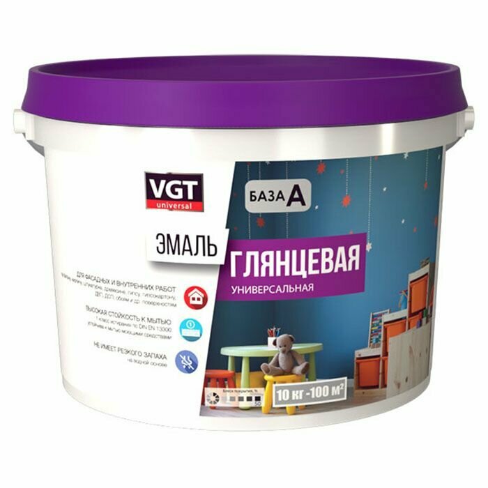 VGT ВД-АК-1179 эмаль акриловая глянцевая, универсальная, база А, супербелая (0,5кг) информация: