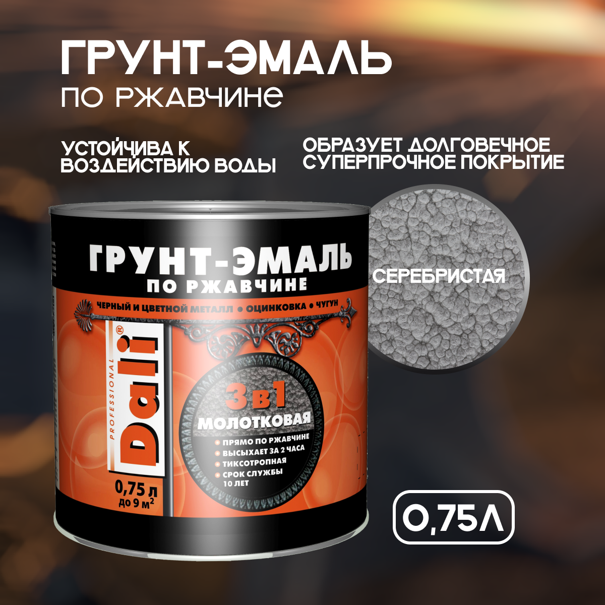 Грунт эмаль 3 в 1 по ржавчине молотковая серебристая 0,75л информация: