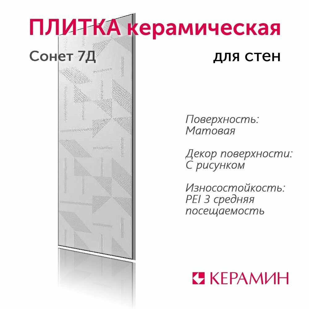 Плитка керамическая Сонет 7Д 75x25 см 1,69 м.кв. информация:
