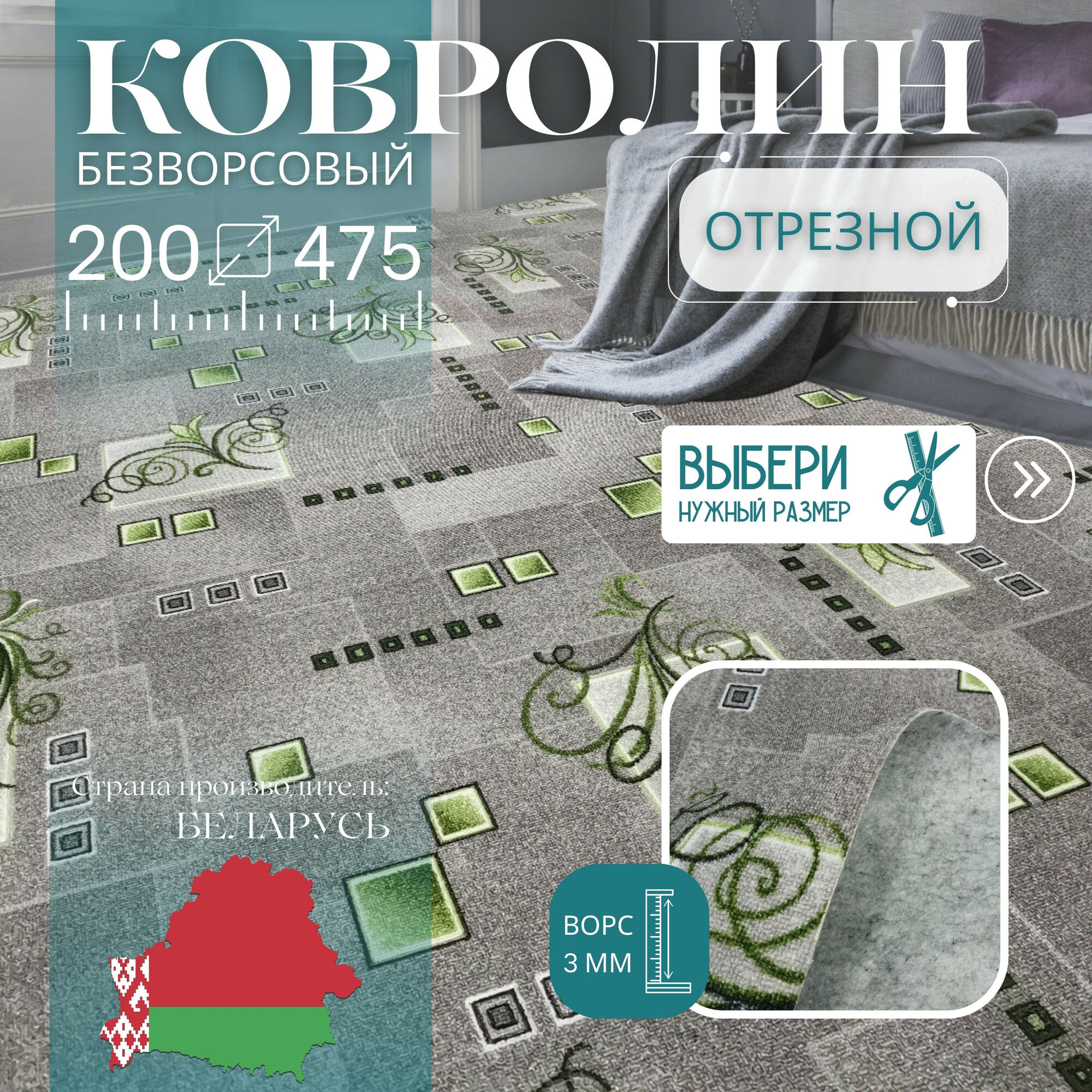 Отзывы на Ковролин метражом 2х4,75 м, без ворса "Зеленый Узор", серый без оверлока