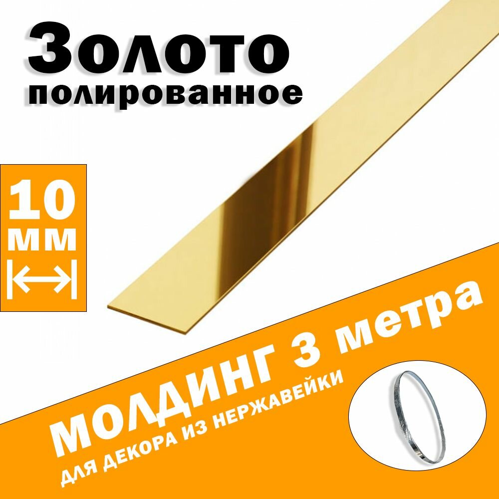 10 цен на Молдинг декоративный для стен, мебели, дверей, потолка, золото глянец, ширина 10 мм, 3 метра