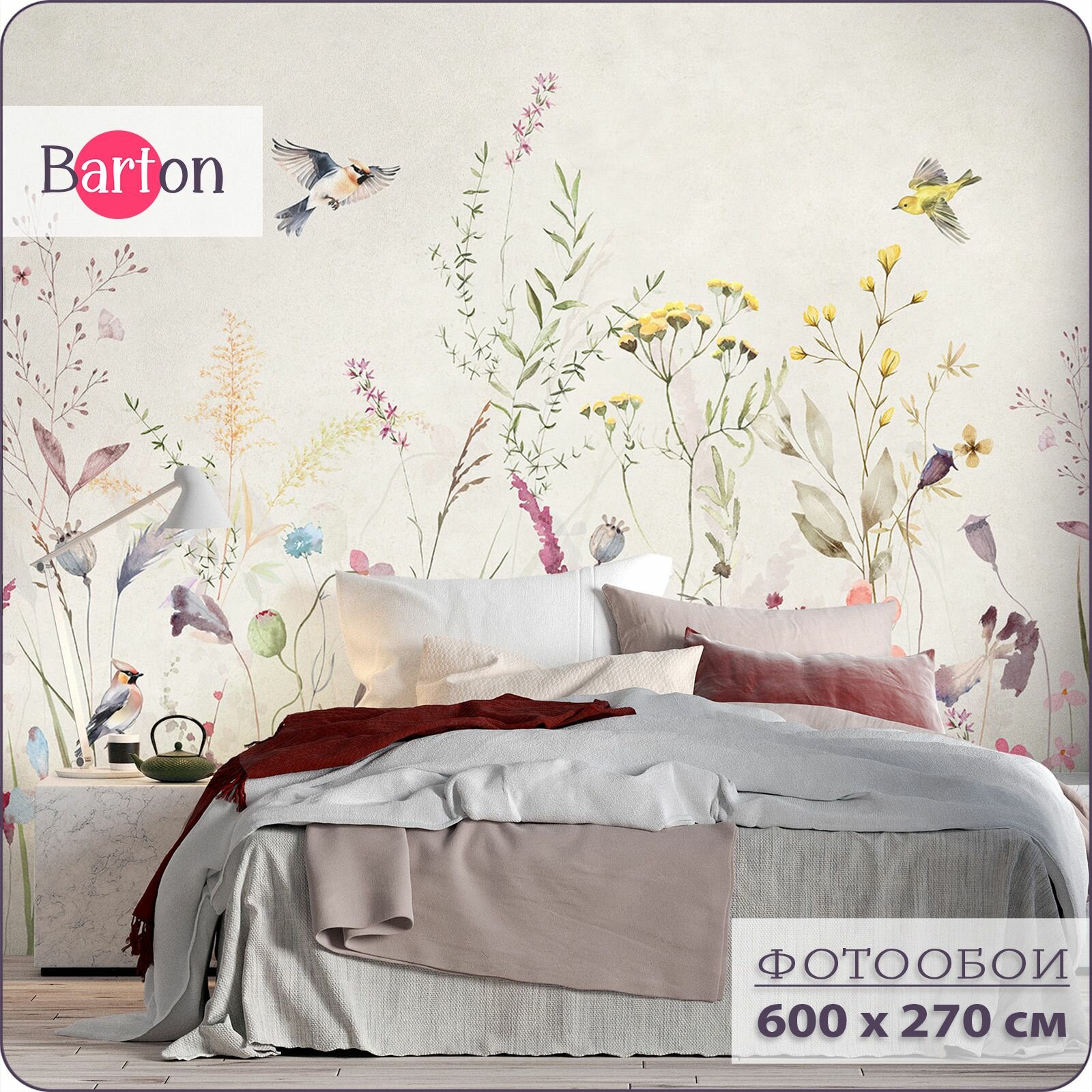 Фотообои на стену флизелиновые 3d Растения Цветы Птицы 600x270 см Bartonwall F092-B информация: