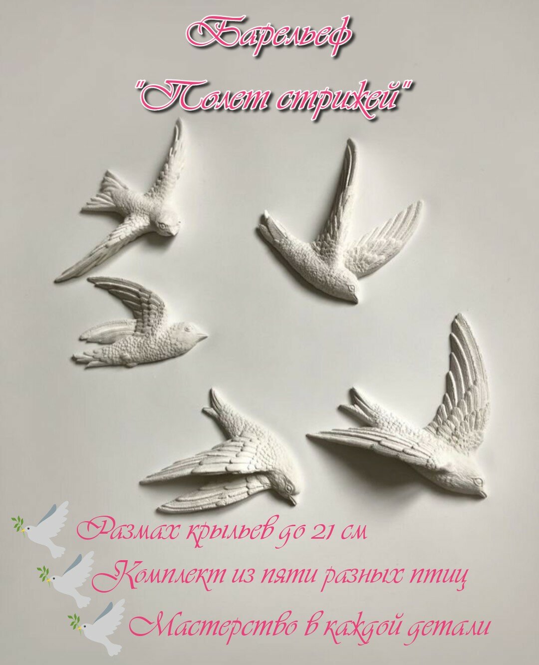 10 цен на Гипсовый барельеф " Полет стрижей" панно, декор стен, декорация на стену, гипсовые птицы, интерьерный подарок, дизайн дома, офиса, детской