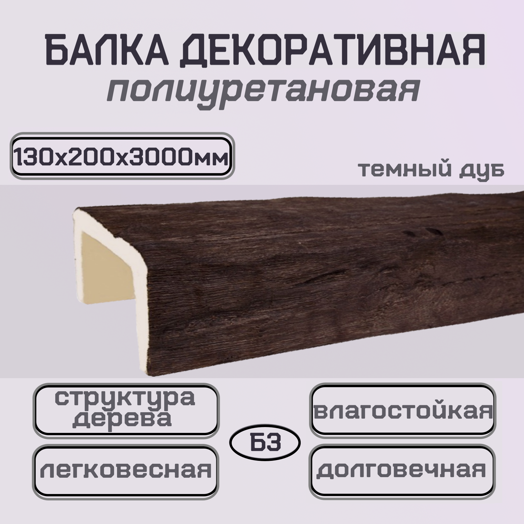 Потолочная балка декоративная из полиуретана Темный дуб 130ммх200ммх3000мм информация: