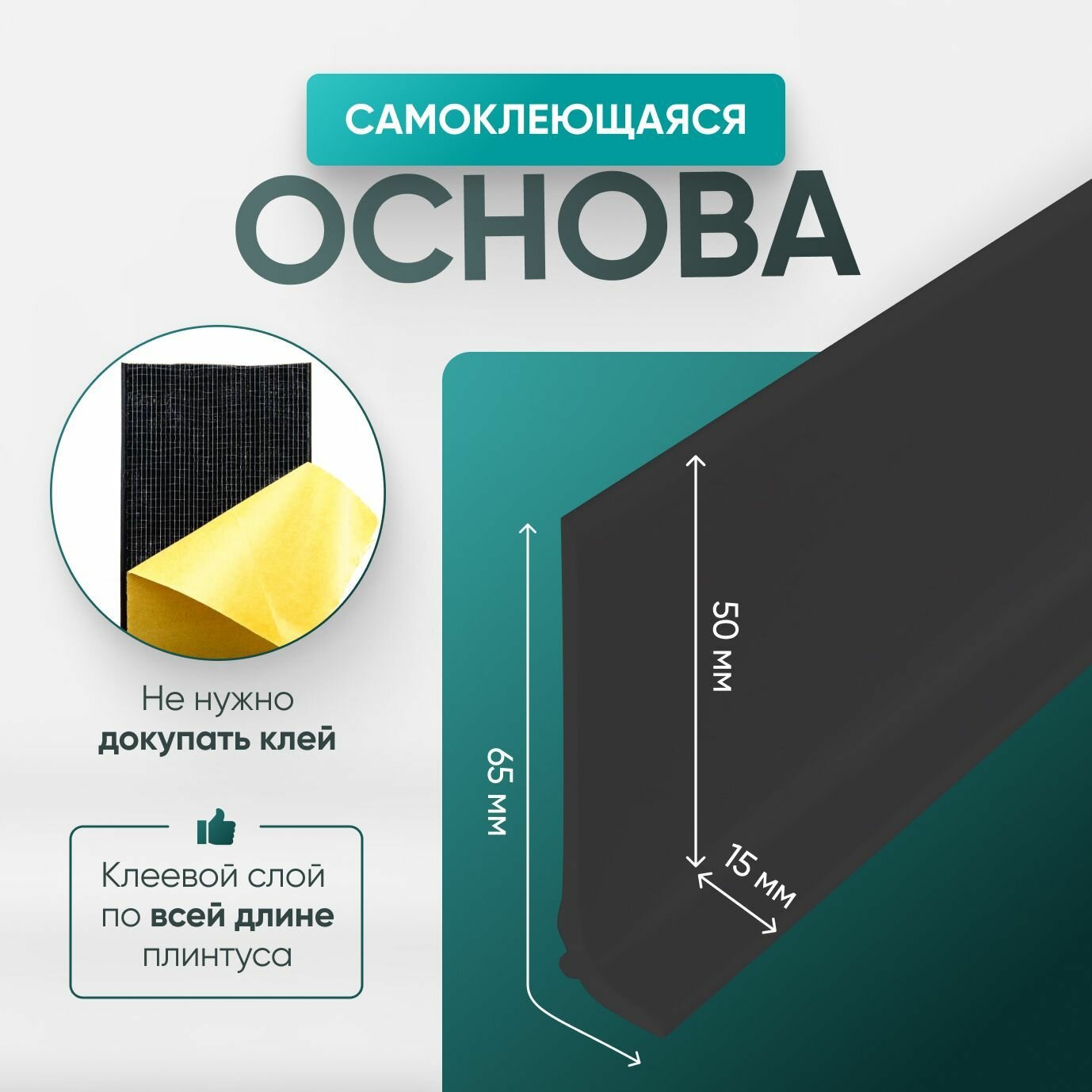 Плинтус гибкий напольный самоклеящийся, 5000х65 мм, 1 шт, чёрный информация: