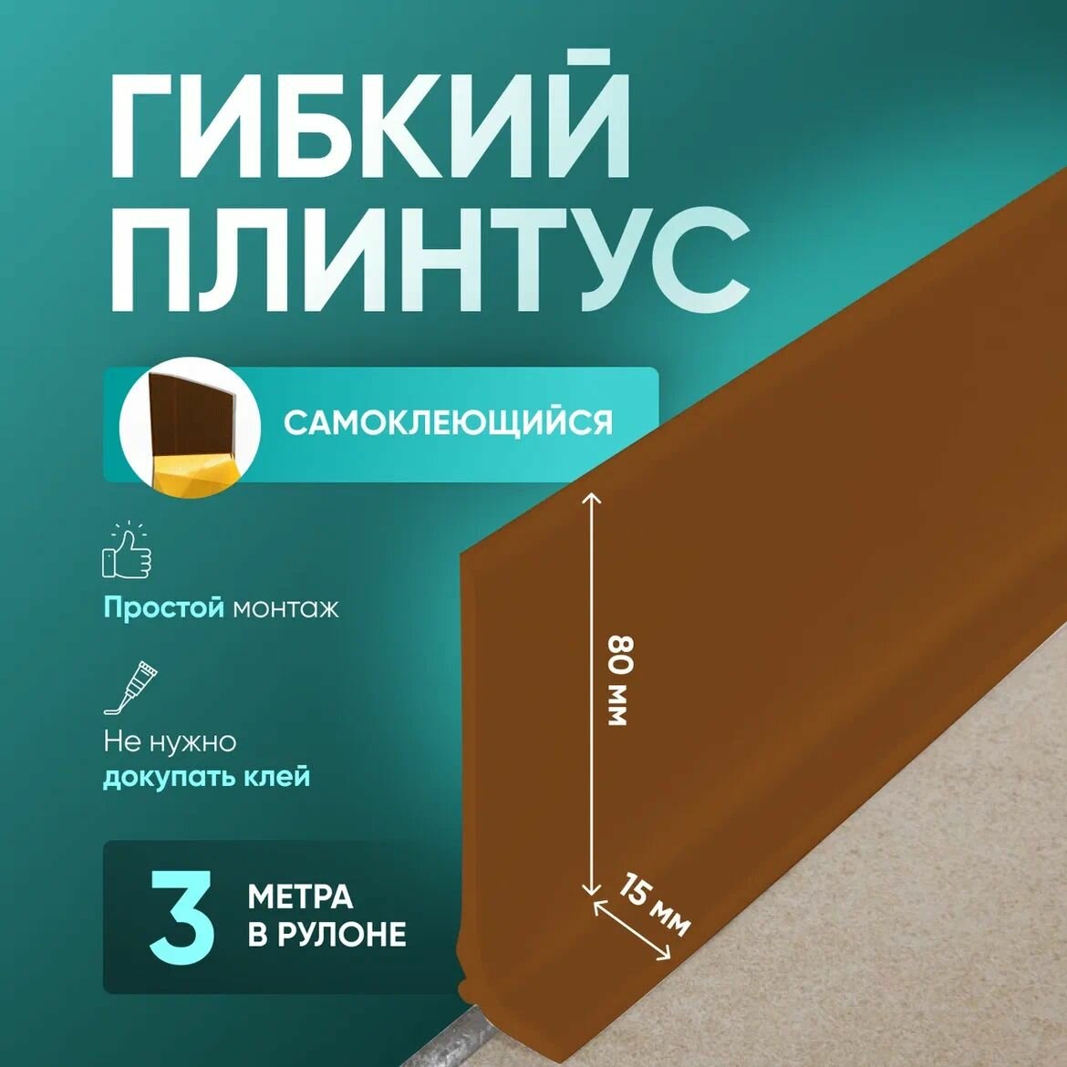 Плинтус гибкий напольный самоклеящийся, 3000х65 мм, 1 шт, коричневый 850 ₽