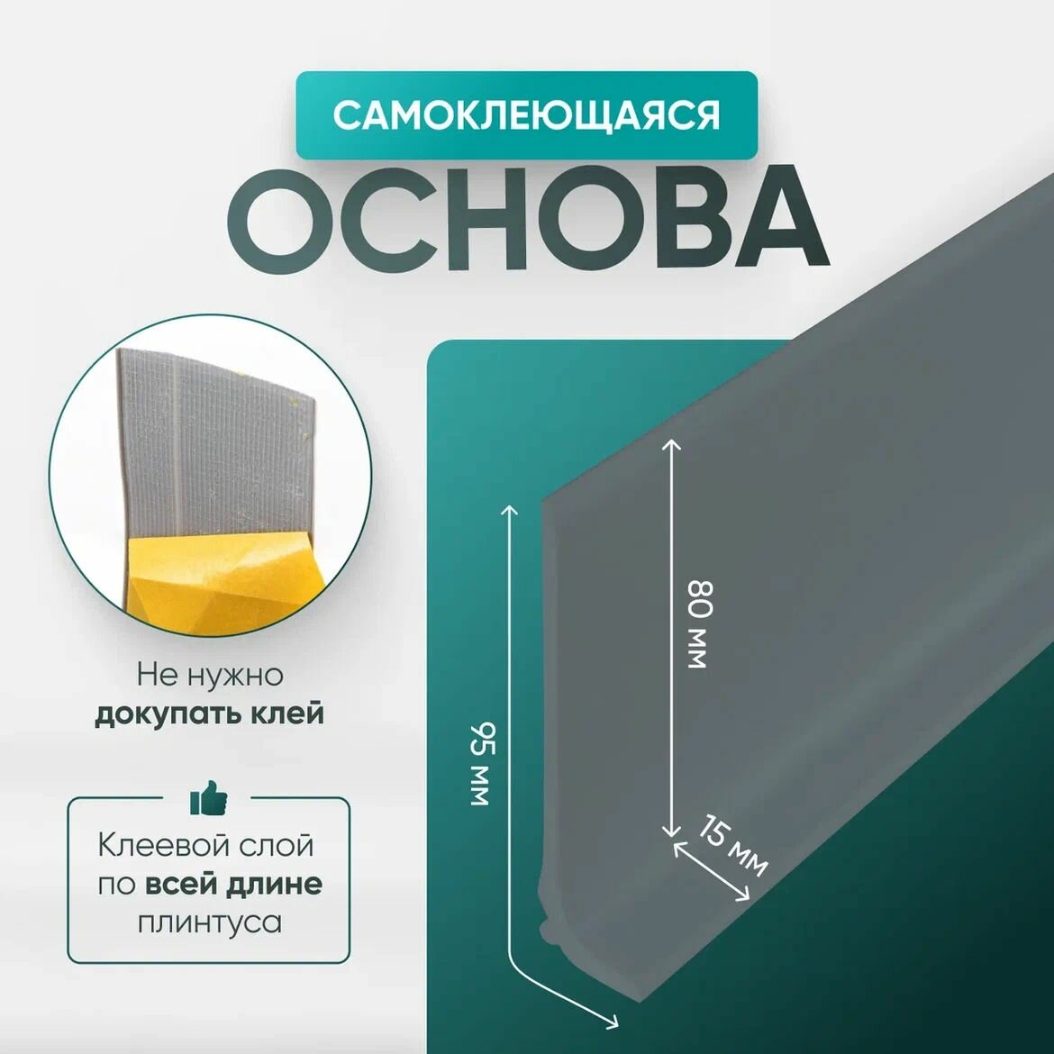 Плинтус гибкий напольный самоклеящийся, 5000х95 мм, 1 шт, серый информация:
