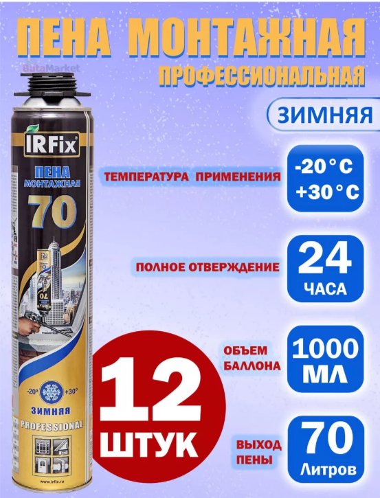 Профессиональная монтажная пена IRFix 70 зимняя 880мл 12шт информация: