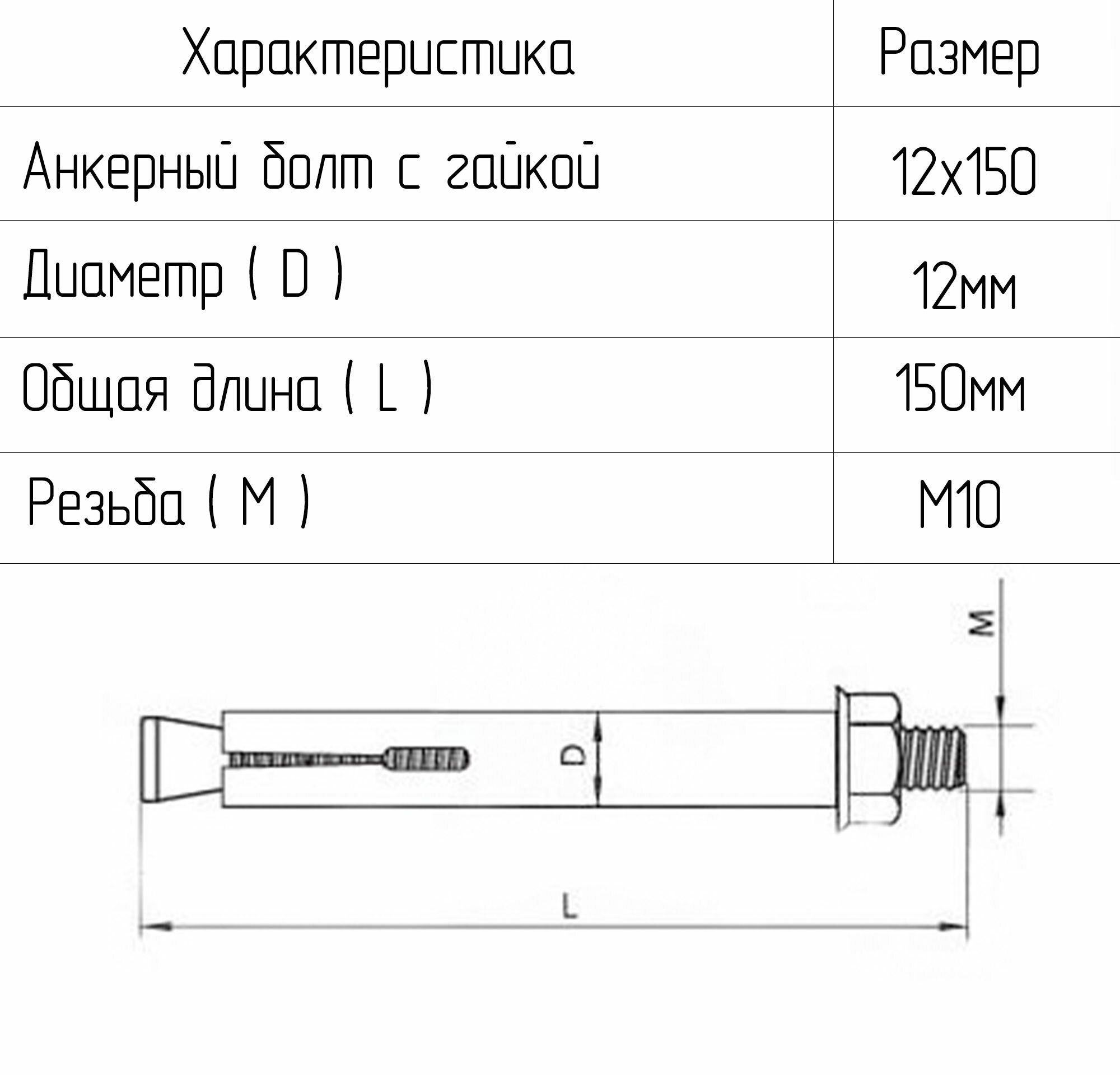 | Комплектация | Анкерный болт с гайкой - 10 штук |