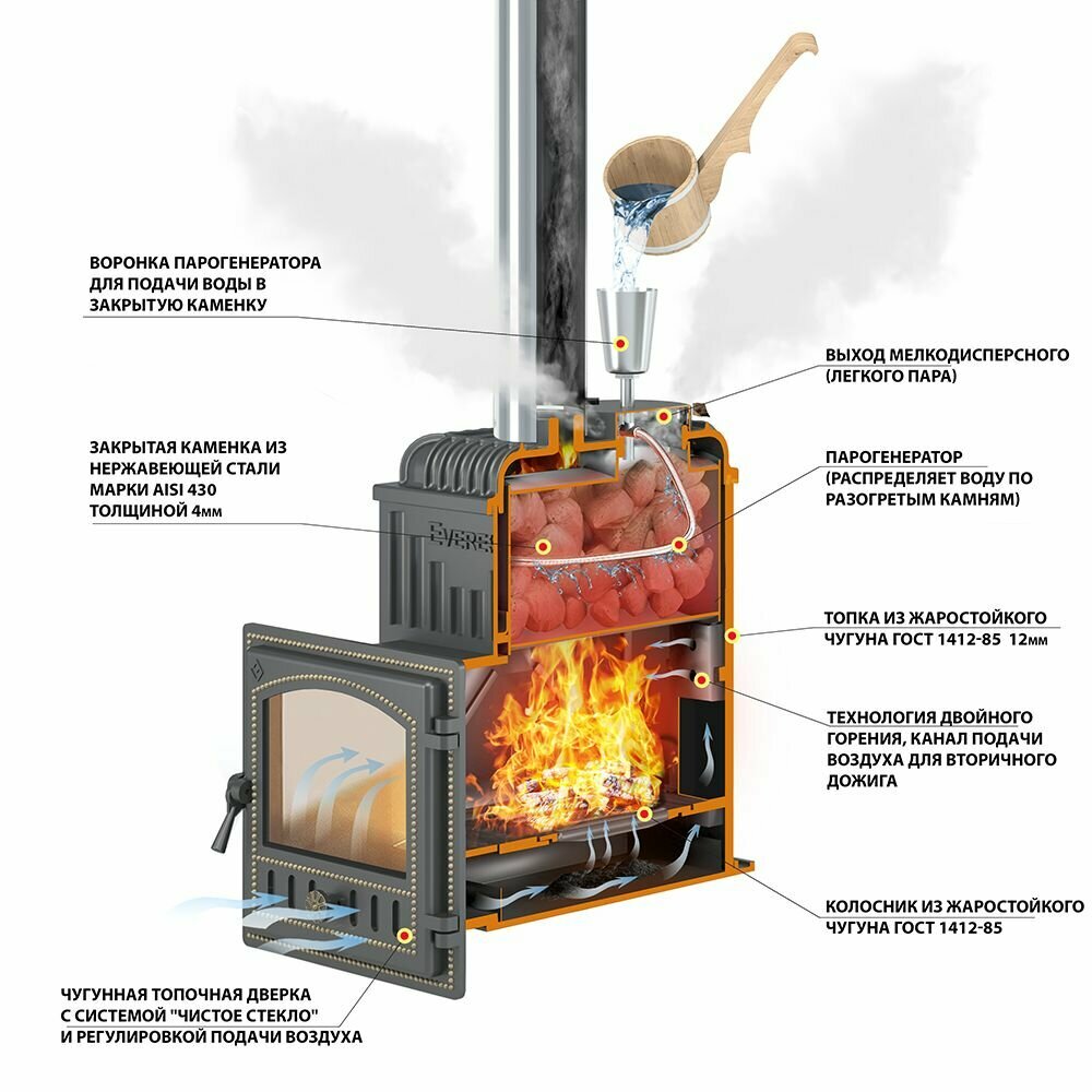 Печь для бани Эверест 24 Легкий пар (280) под обкладку информация: