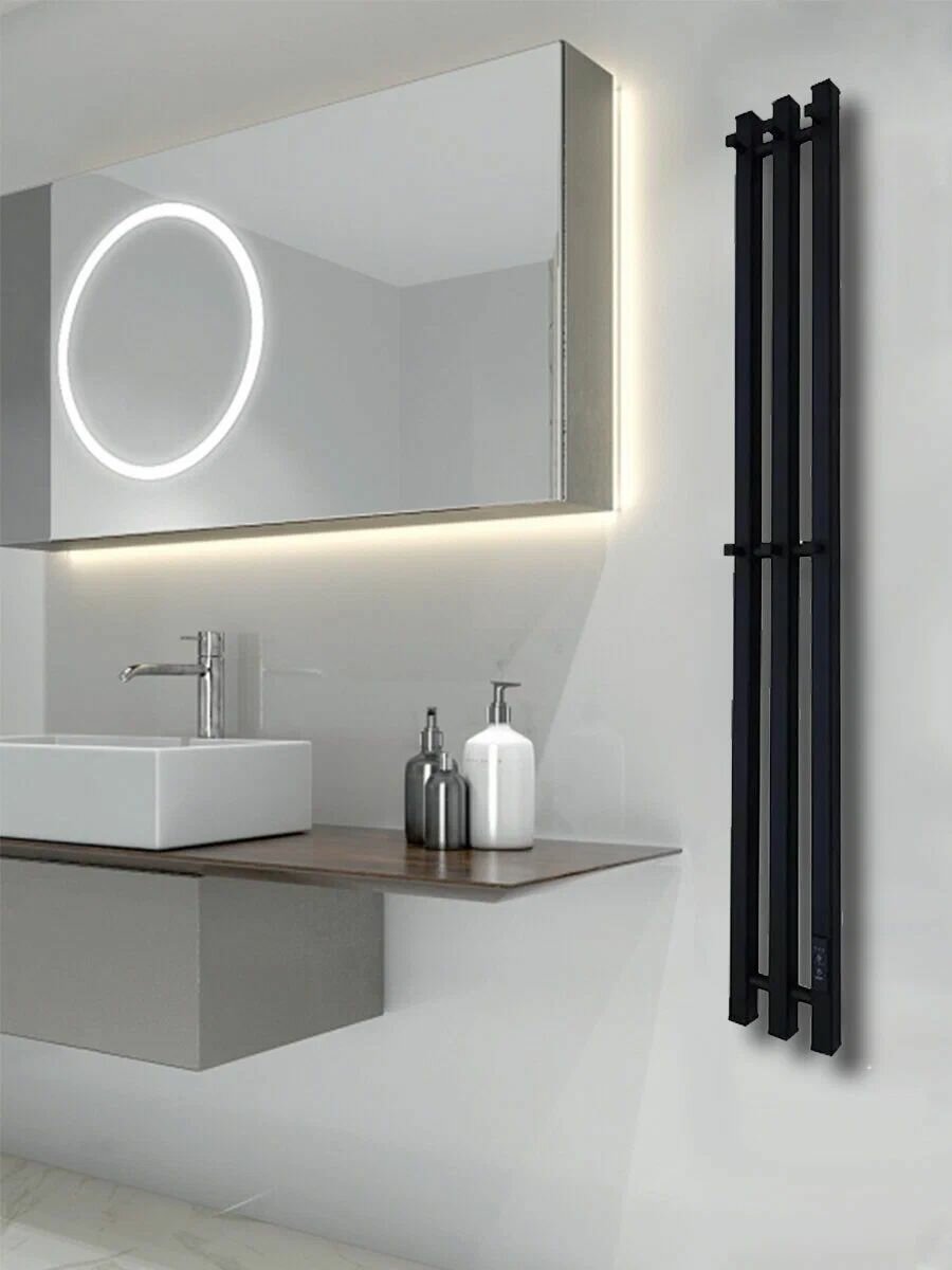Полотенцесушитель вертикальный GROIS Orso GR-134 1200 черный матовый, диммер справа