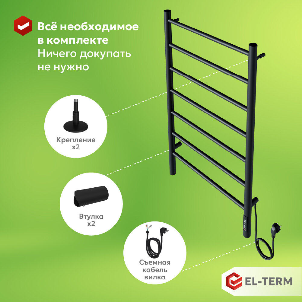 10 цен на Полотенцесушитель электрический EL-TERM (эл-терм) Лион П7 500х900 мм, черный матовый, гарантия 2 года