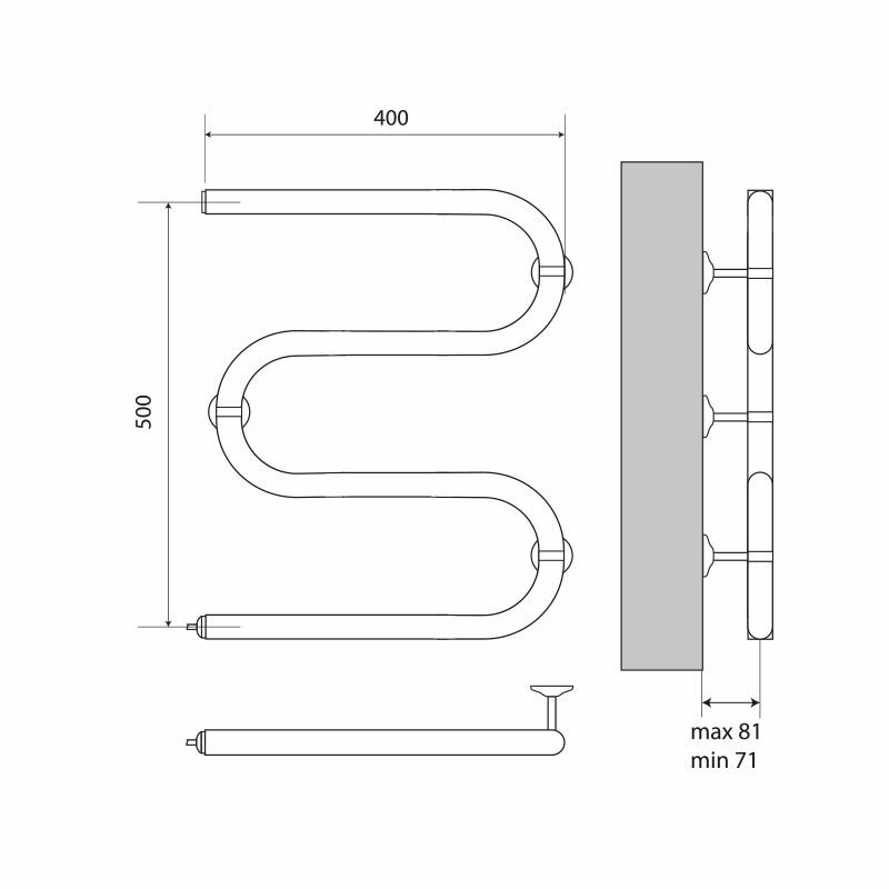 Полотенцесушитель электрический 500мм400 мм Simple Electro М-обр., cухой ТЭН 75Вт Melodia della vita информация: