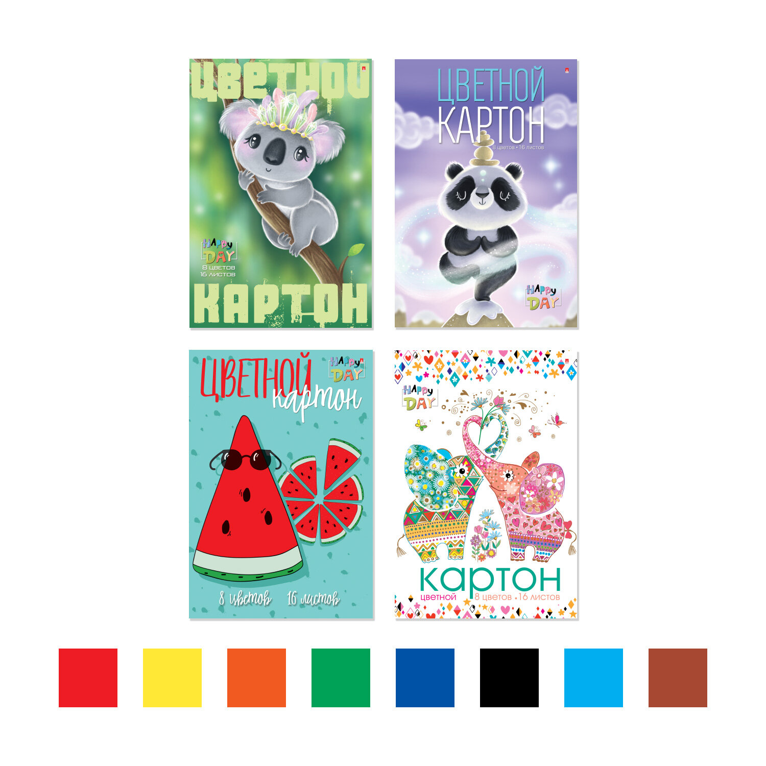 10 цен на Набор цветного картона Альт, А4 (200 х 290 мм), 16 листов, 8 цветов , "мультики", 4 вида, Арт. 82700