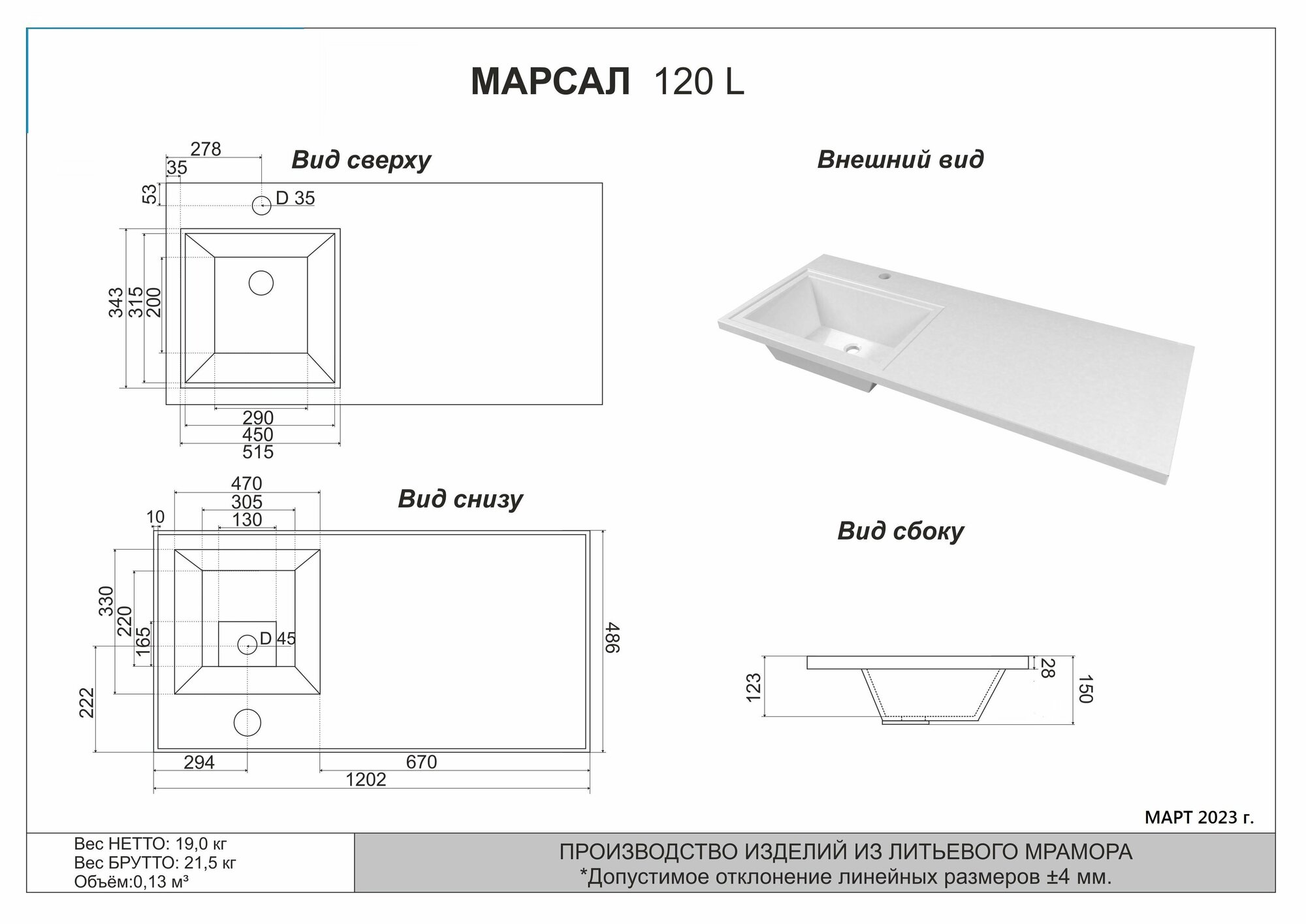 Раковина белая Марсал 120 лев. на стиральную машину 1200*486 информация: