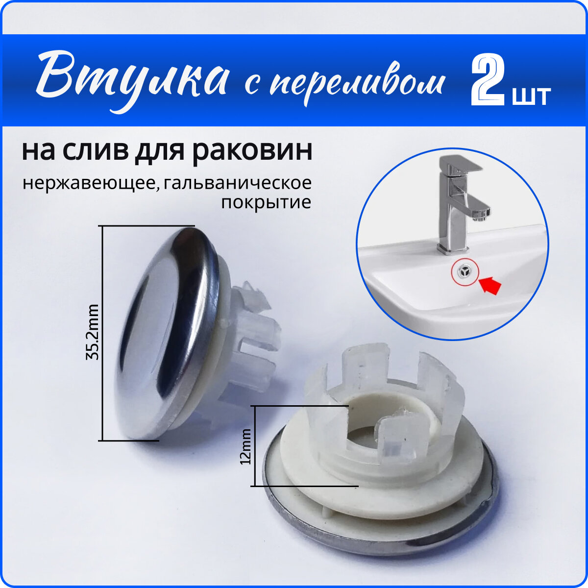 Втулка пластиковая с нержавеющей вставкой для перелива отверстия раковины, 2шт информация: