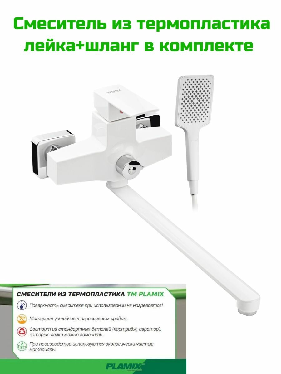 Смеситель для душа белого цвета из термопластика PLAMIX Mario-003 WHITE (без шланга и лейки)