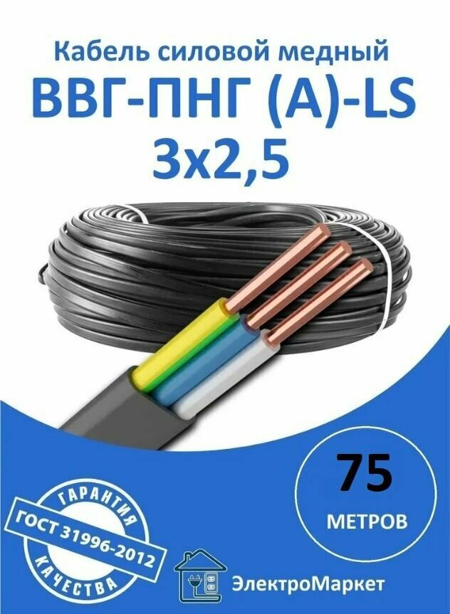 75метр Кабель-провод ВВГ-п-НГ LS ГОСТ 3х2,5 информация: