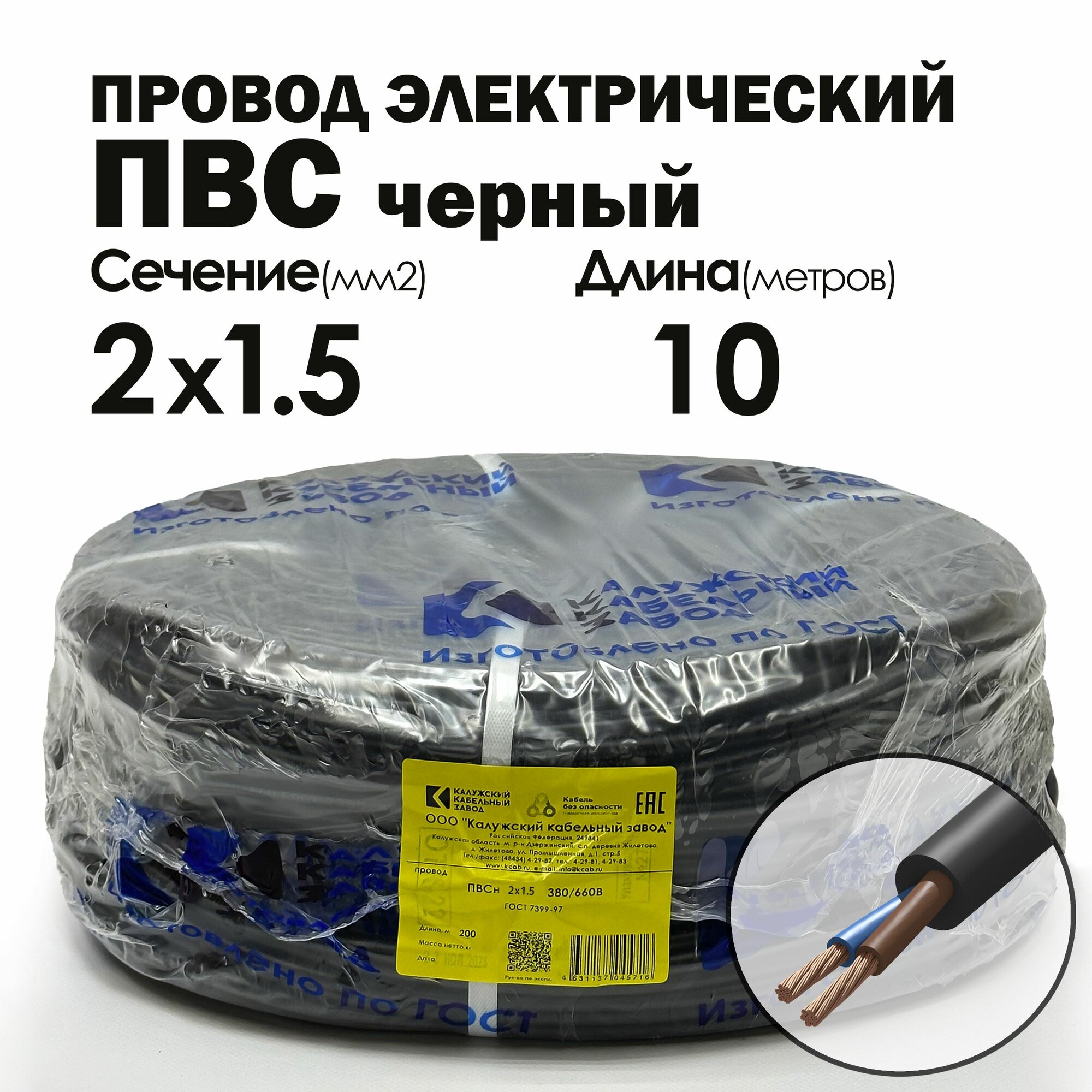 10 цен на Провод ПВС 2х1.5 10метров черный Калужский Кабельный Завод ГОСТ