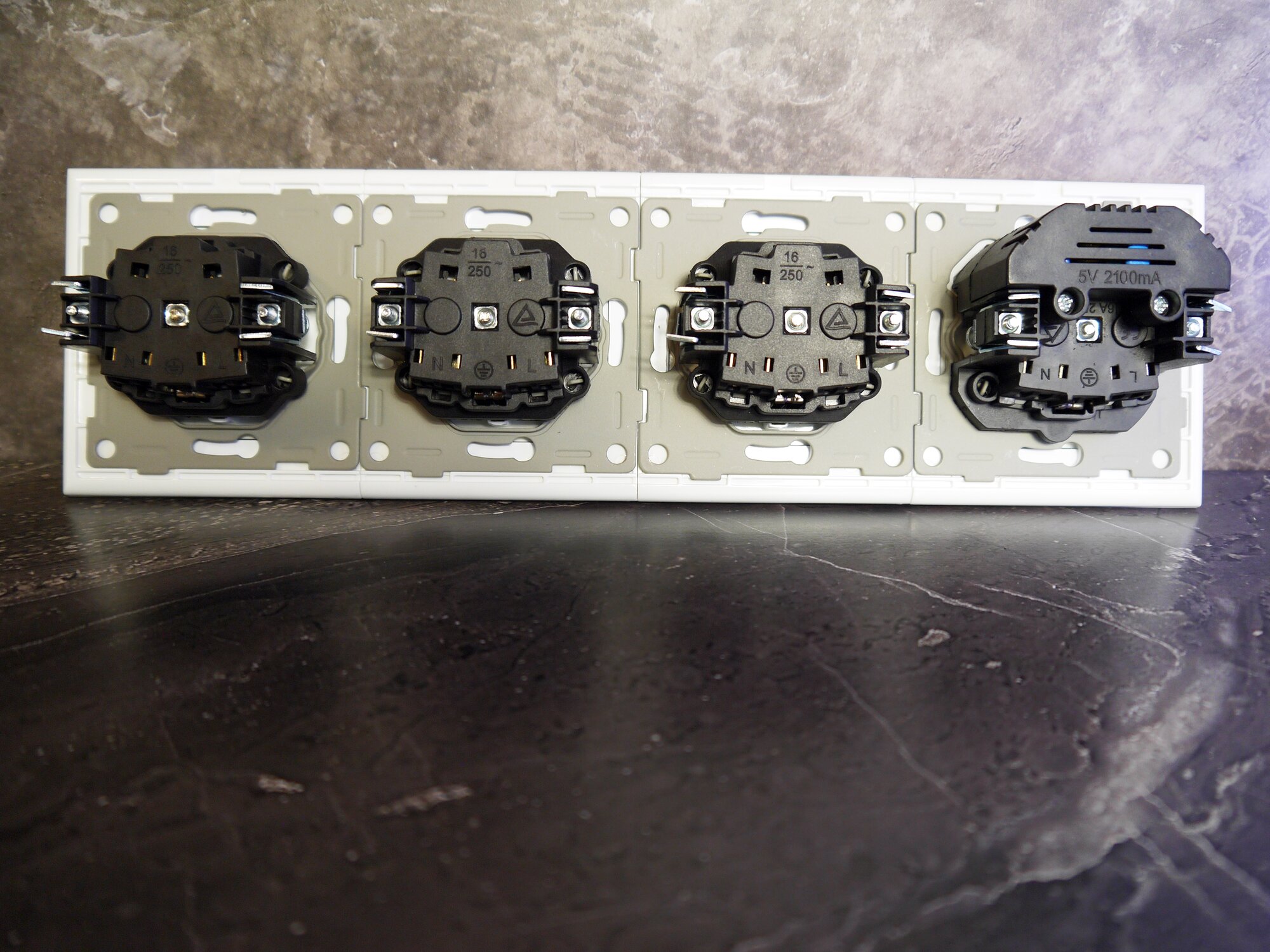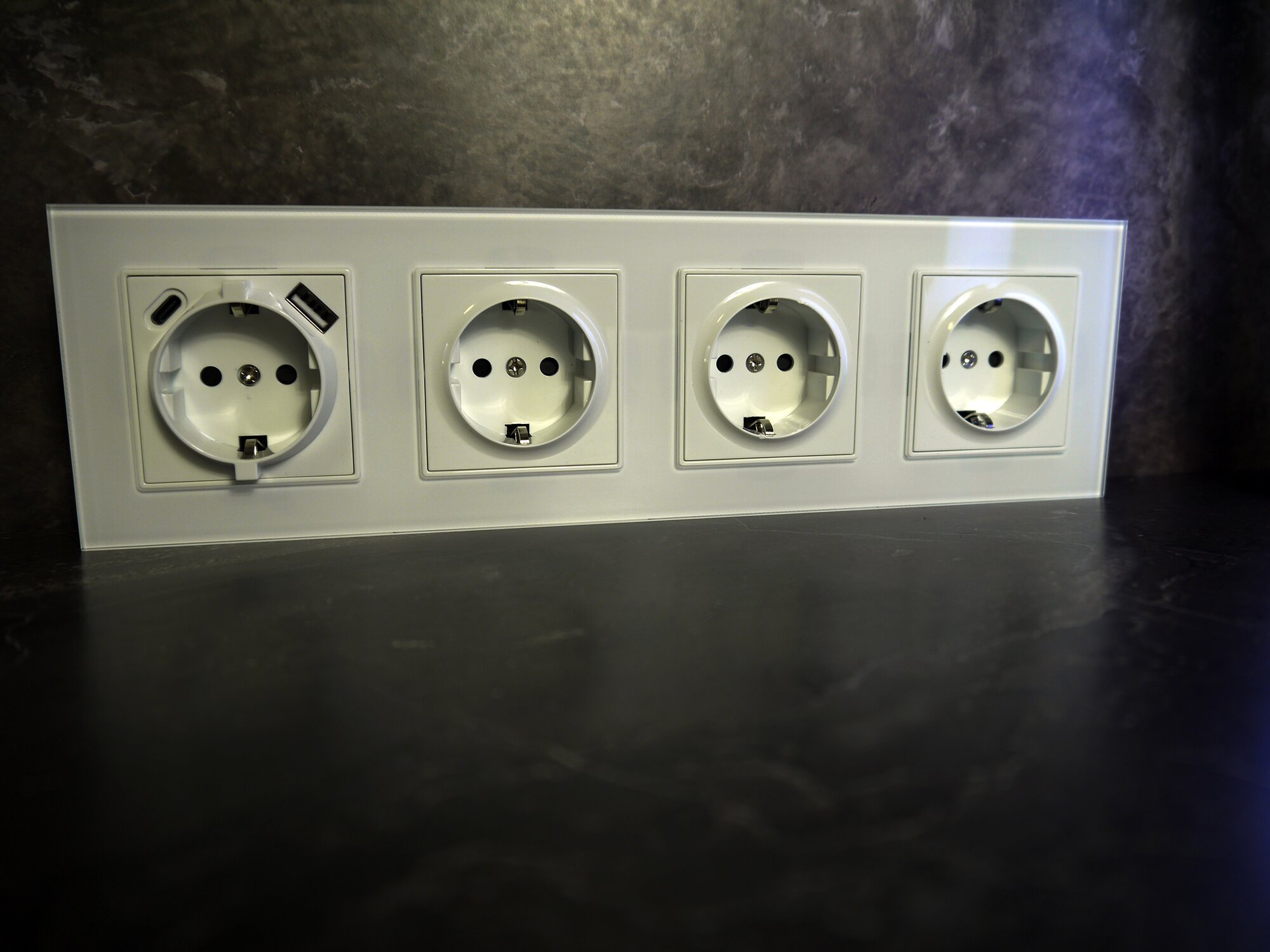 Четверная розетка белая с USB-портами и Type-c разъемом информация: