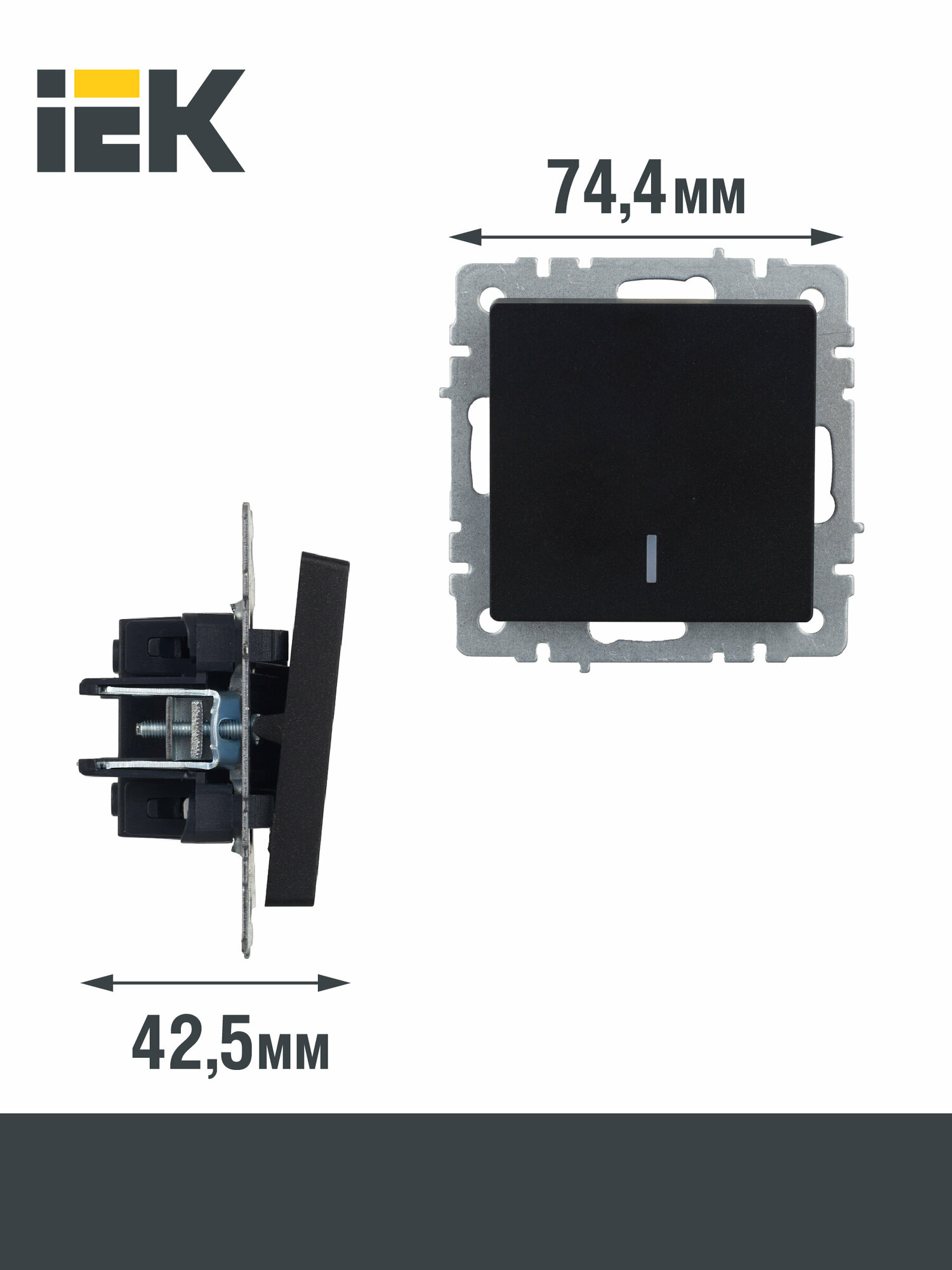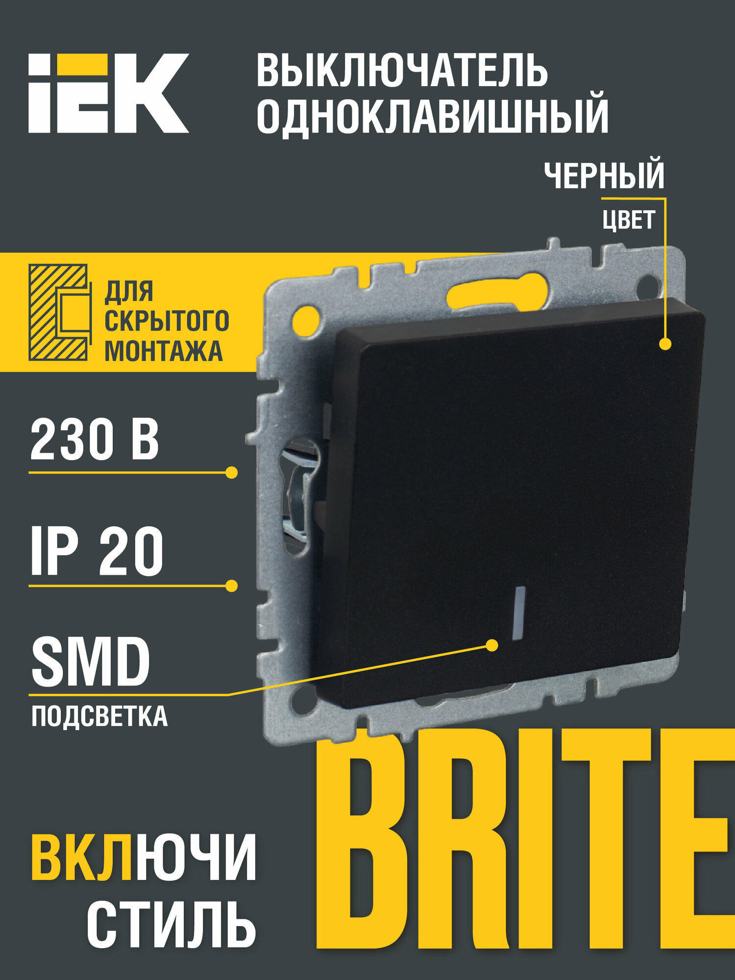 Выключатель встраиваемый одноклавишный с подсветкой IEK BRITE BR-V10-1-10-K02 ВС10-1-1-БрЧ черный информация: