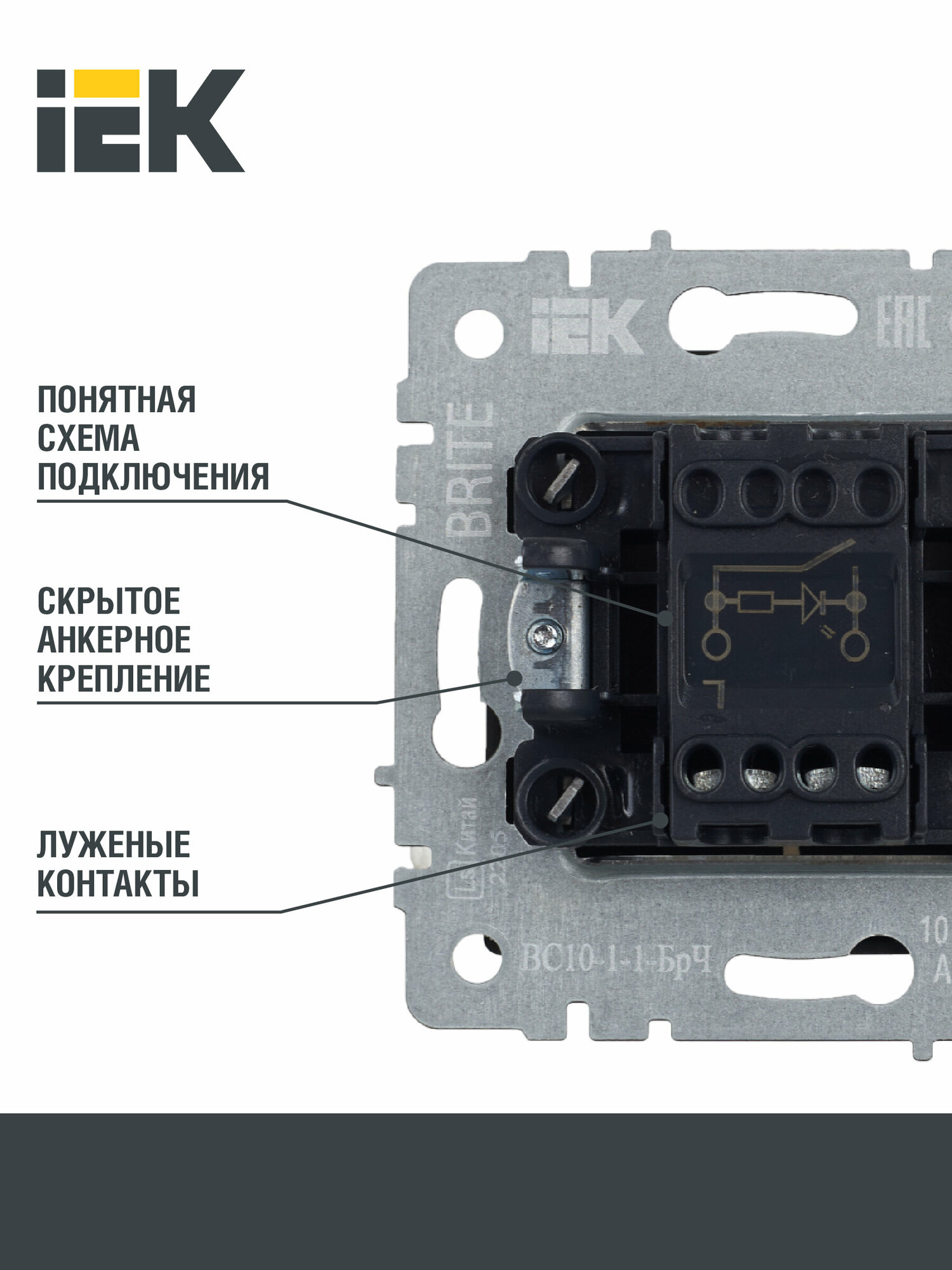 Выключатель одноклавишный с подсветкой BRITE 10А ВС10-1-1-БрБ IEK 255 ₽