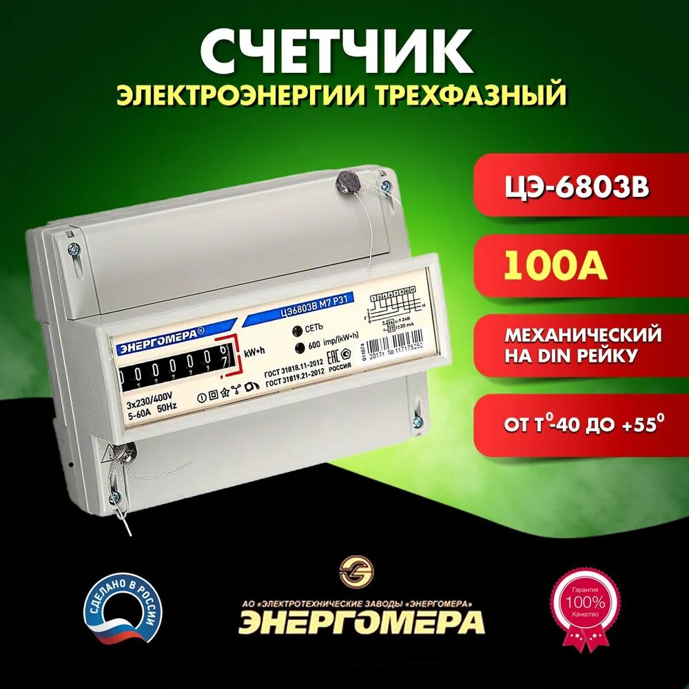 10 цен на Счетчик электроэнергии трехфазный 100А на дин рейку ЦЭ-6803В
