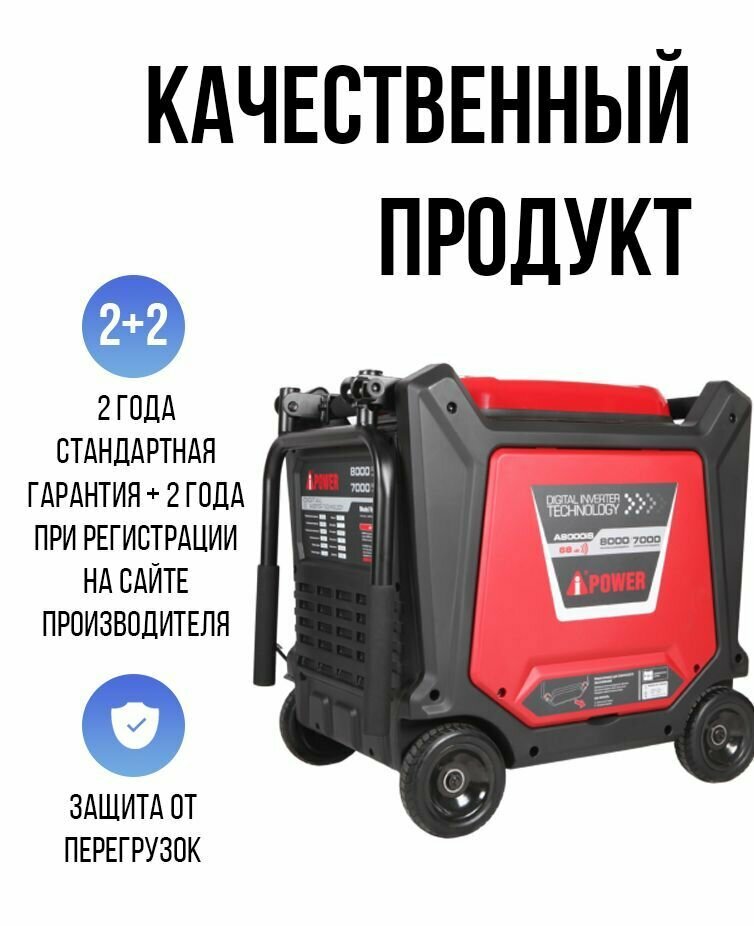 Генератор бензиновый инверторный A- IPOWER A8000IS 8кВт, 105кг бензогенератор с ручным и электро запуском двигателя, электростанция информация: