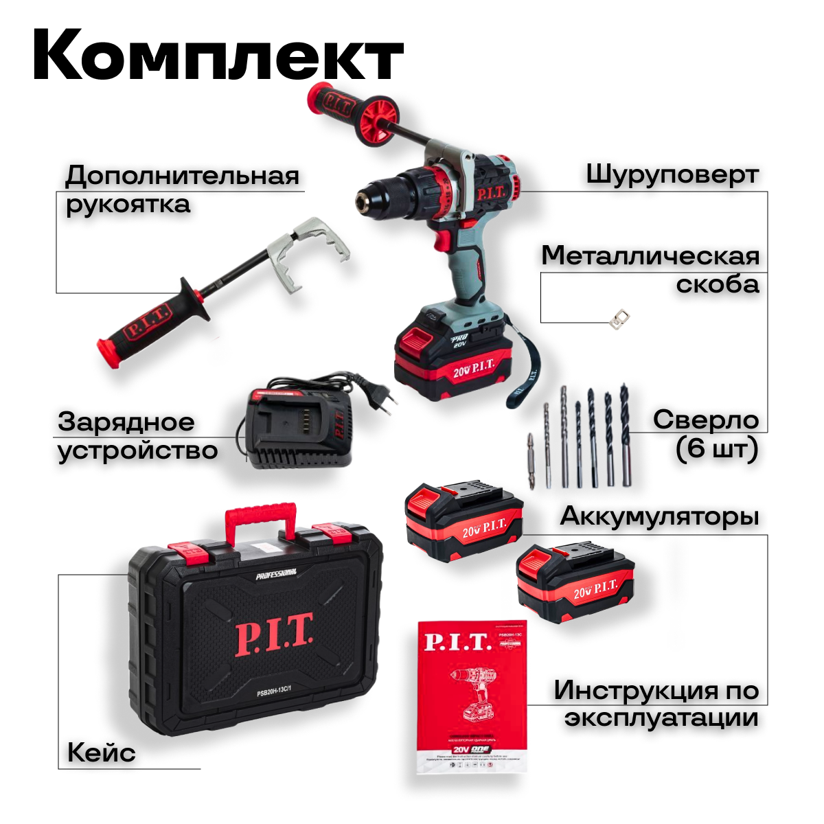 Аккумуляторная ударная дрель-шуруповерт P. I. T. PSB20H-13C электроинструмент, подарок на день рождения мужчине, любимому, папе, дедушке, парню